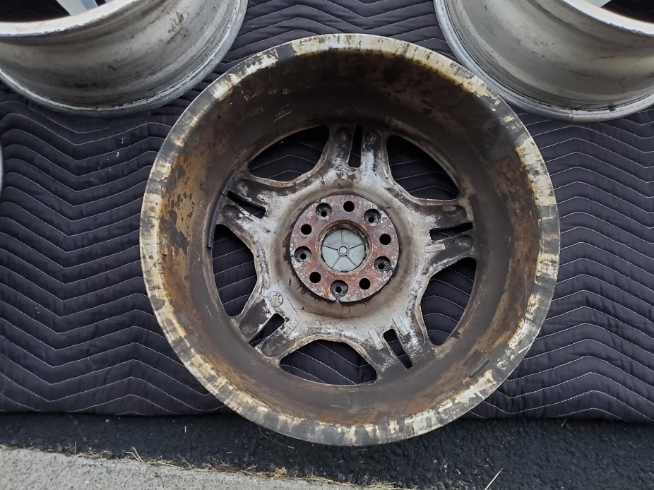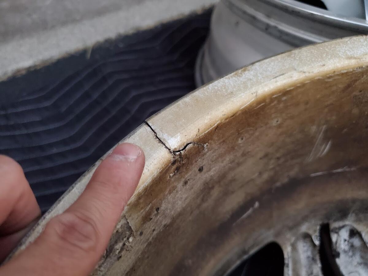 Asking $OLD + shipping for the set of 4. Front wheels have been occasionally available from BMW at a cost of ~$600 each. Rears are closer to ~$700 each. These wheels are ideal for someone who may want to get the crack welded up, run them as-is, and eventually get them refinished down the road.