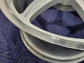The polished lips does not make repairing the curb rash more difficult - it just requires a different process. Most wheel repair shops could refinish these, I could even refinish them prior to shipping at additional cost.