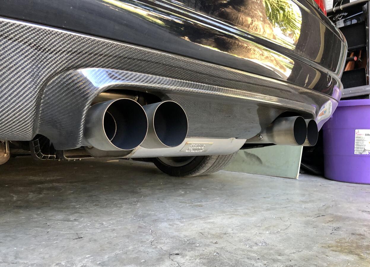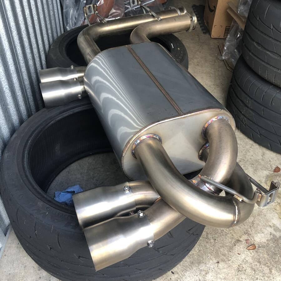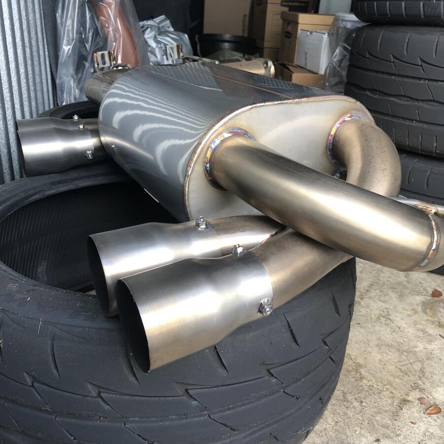 Selling like new Status Gruppe Tuning SCZA muffler section 3 exhaust with the optional raw titanium finish 80mm tips ($180 option). Got it new and put only around 1k miles on it, currently off the car (switched back to light and very loud track exhaust). Exhaust has no damage/scratches/blemishes, and you won’t have to wait months getting the run around from SGT to ship it (all SCZA versions are currently on back order as well). This is in my opinion one of the best all around section 3 exhausts/mufflers for our cars, good deep clean sound and not too loud when cruising around, but opens up very nicely when WOT. Plenty of pics below and full video review with sound clips in different situations linked.