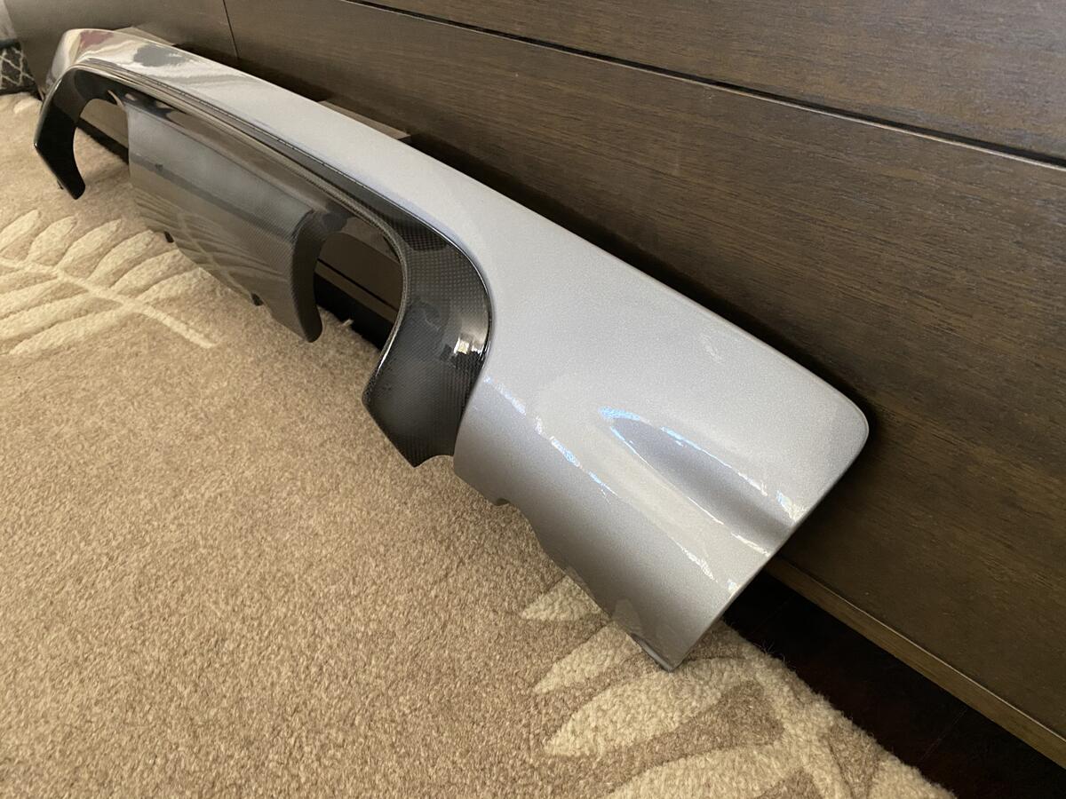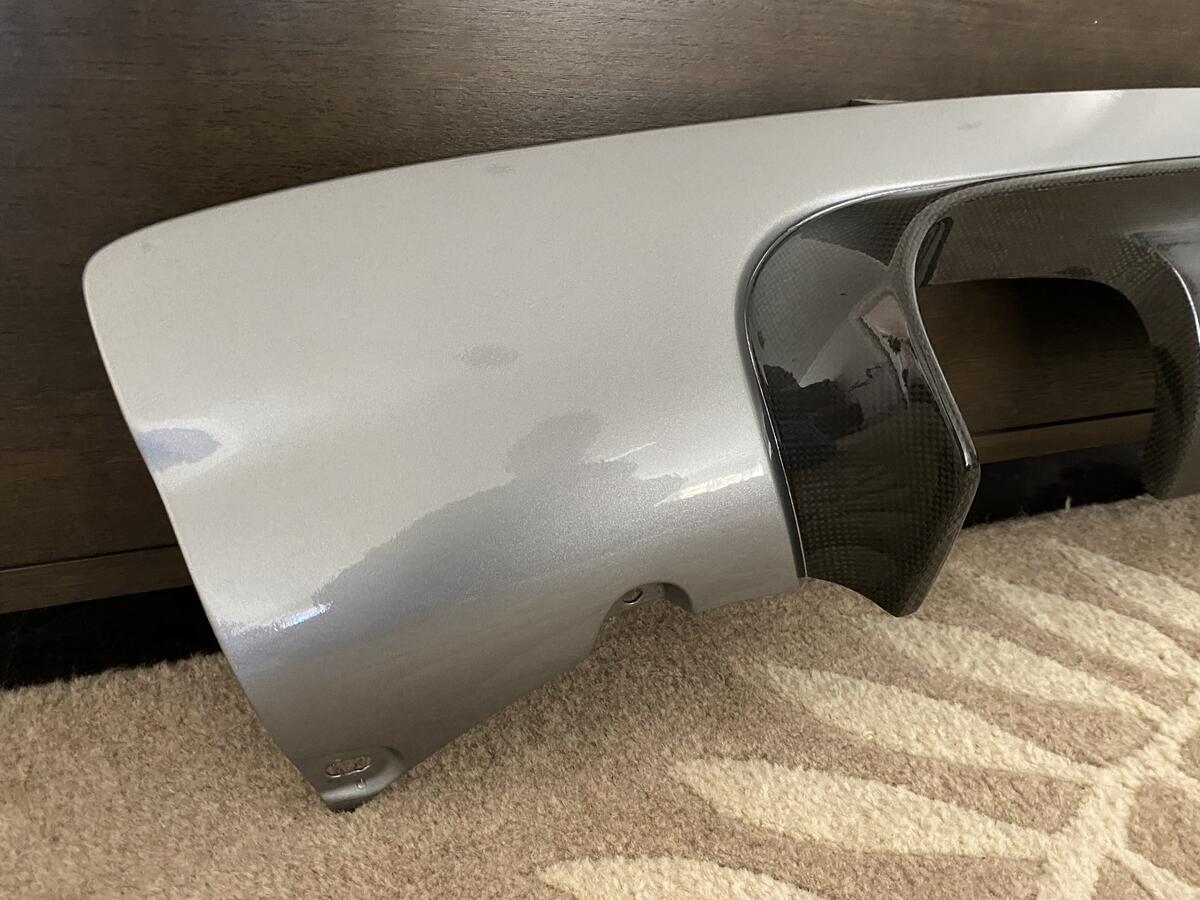 Looking to get rid of my Mile-End Composites CSL Diffuser. The paint is in great condition however the diffuser does have minor clouding (see pictures) on some areas of the carbon fiber from sitting in the sun without a clear coat. The carbon fiber has been clear coated and painted silver grey with the exposed carbon fiber lip like an OE CSL piece.
