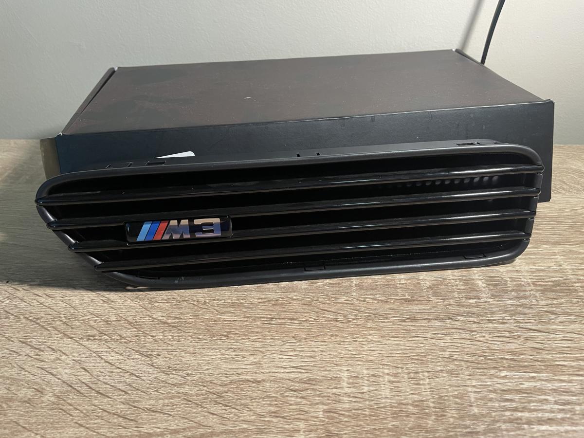 Gloss black fender grilles have new Genuine BMW Logo M3 Badges, also coated and used for about 500 miles. One grille did have a tab break on removal but doesn’t affect mounting, also has some minor cosmetic flaws as pictured. Overall, great condition.