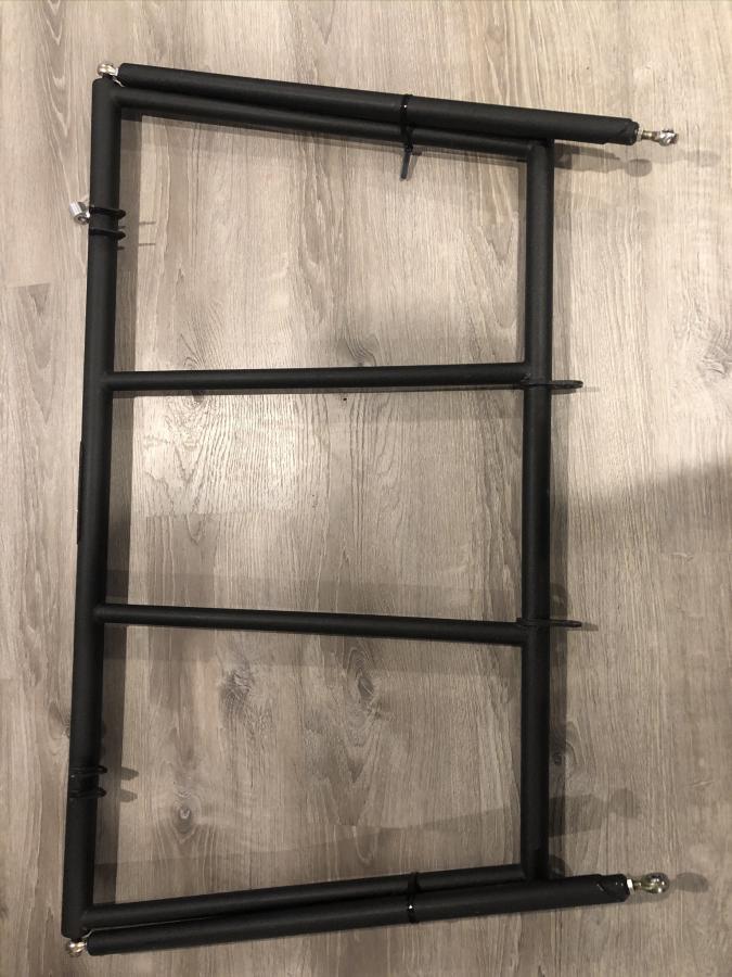 Great condition. Ideal for those who drive their cars on the track and street. It easily folds down with two bolts and I was able to load four wheels/tires.