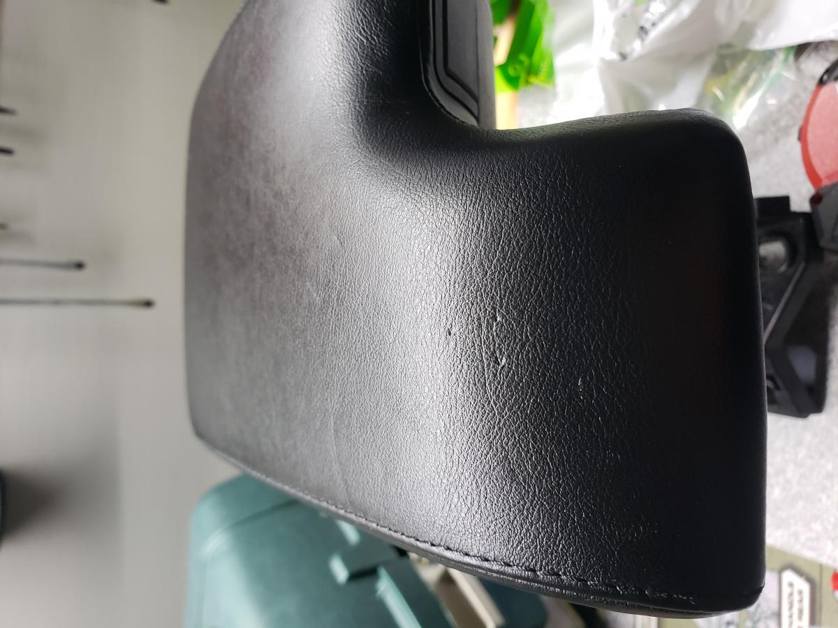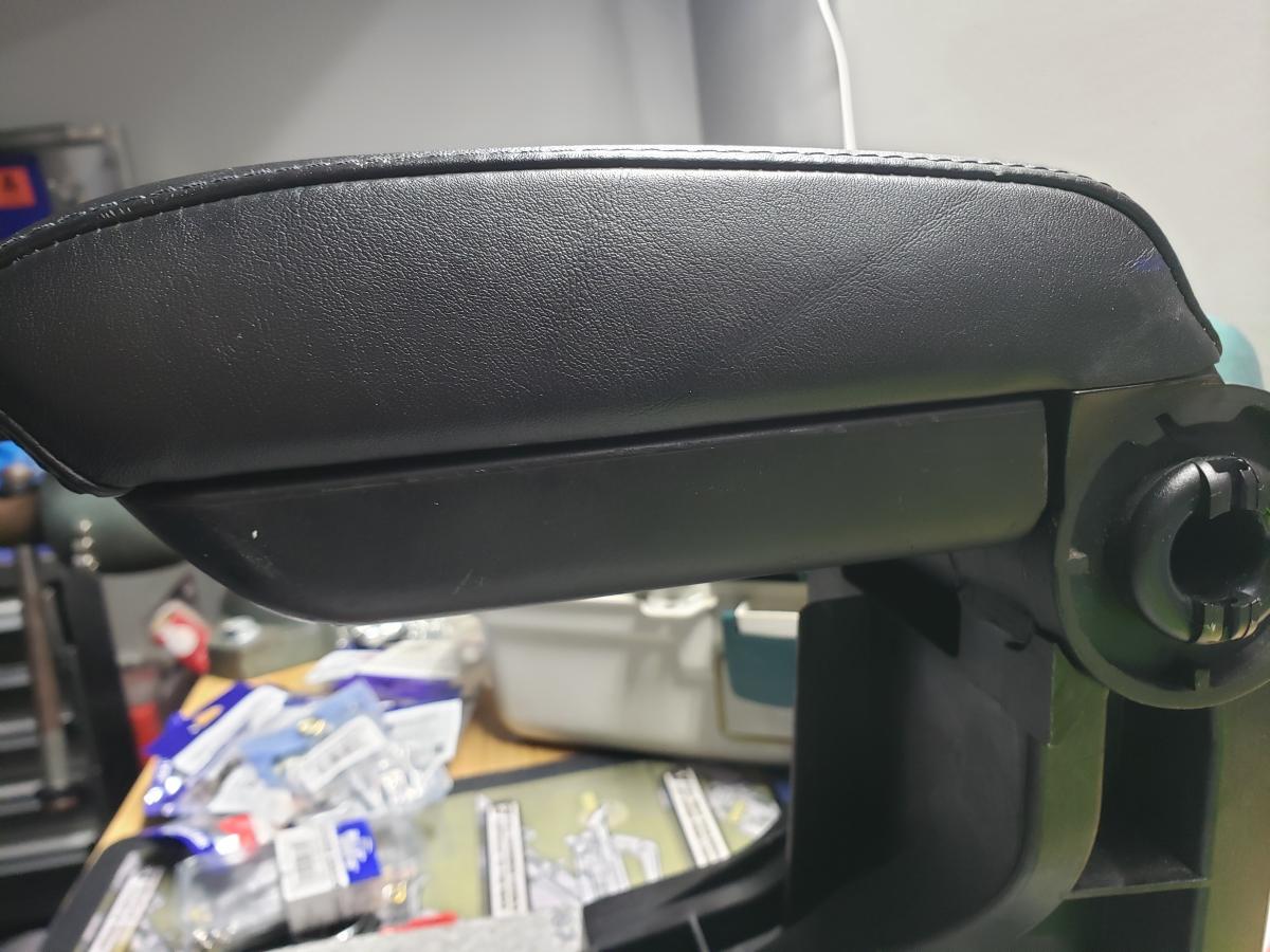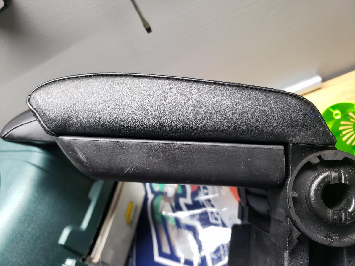 Black arm rest. Might be better then yours. Leather is real good. Three dots on the front side. Underside is ok, your moms underside is way worse, ask her boyfriend.