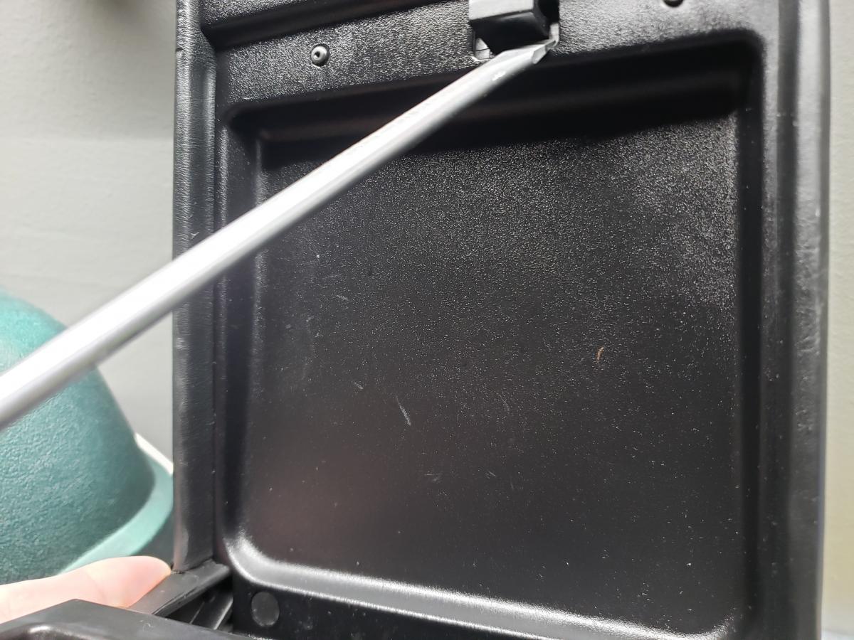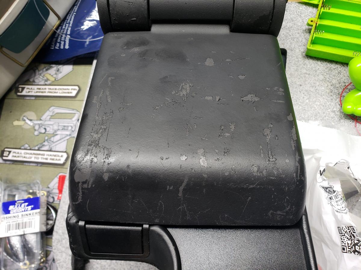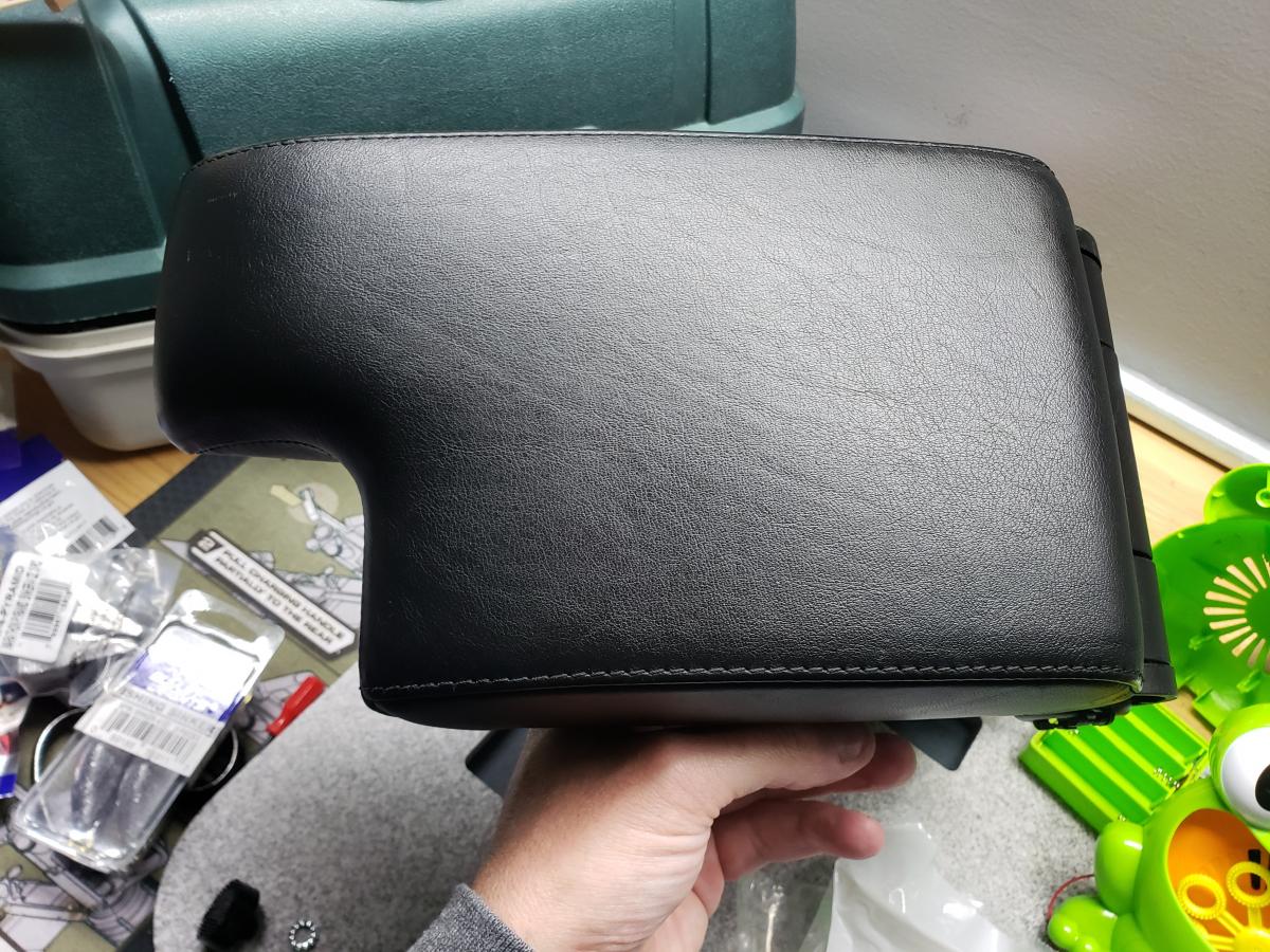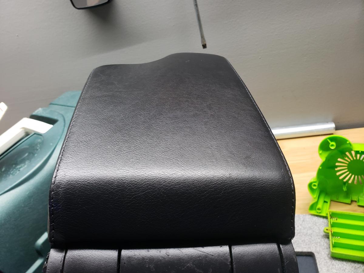 Black arm rest. Might be better then yours. Leather is real good. Three dots on the front side. Underside is ok, your moms underside is way worse, ask her boyfriend.