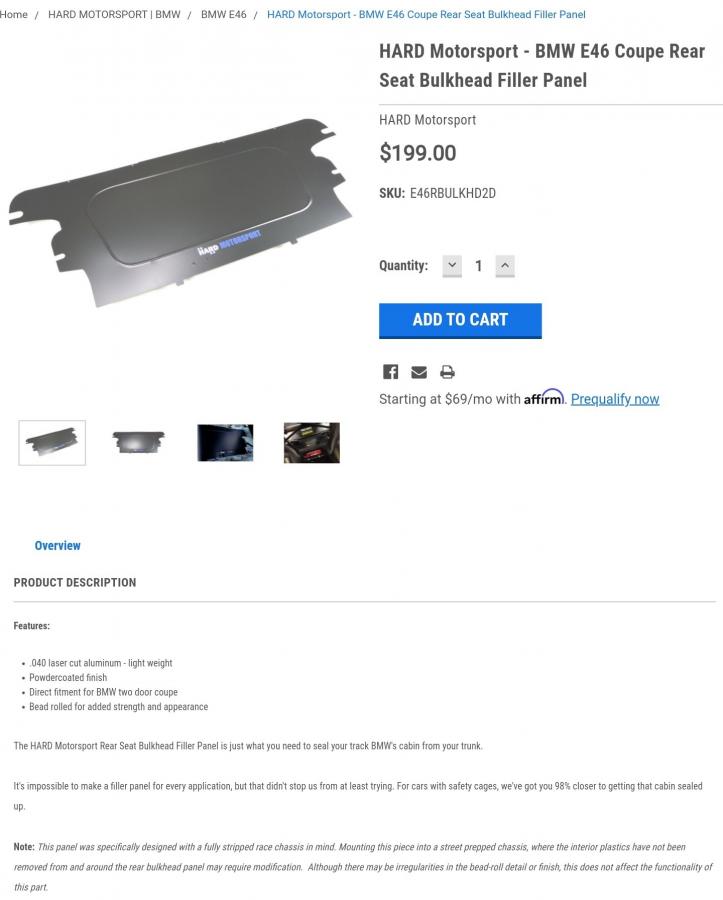 New Hard Motorsports rear seat delete (seat back) - Bulkhead - Socal