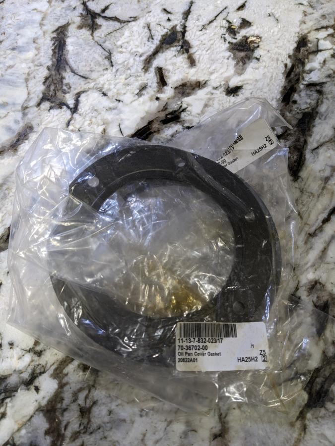 -​​​​​​Lower oil pan gasket PN 11137834886. This is the larger one for late cars I believe. $10 shipped in the lower 48 in padded envelope. I have 2 of these.