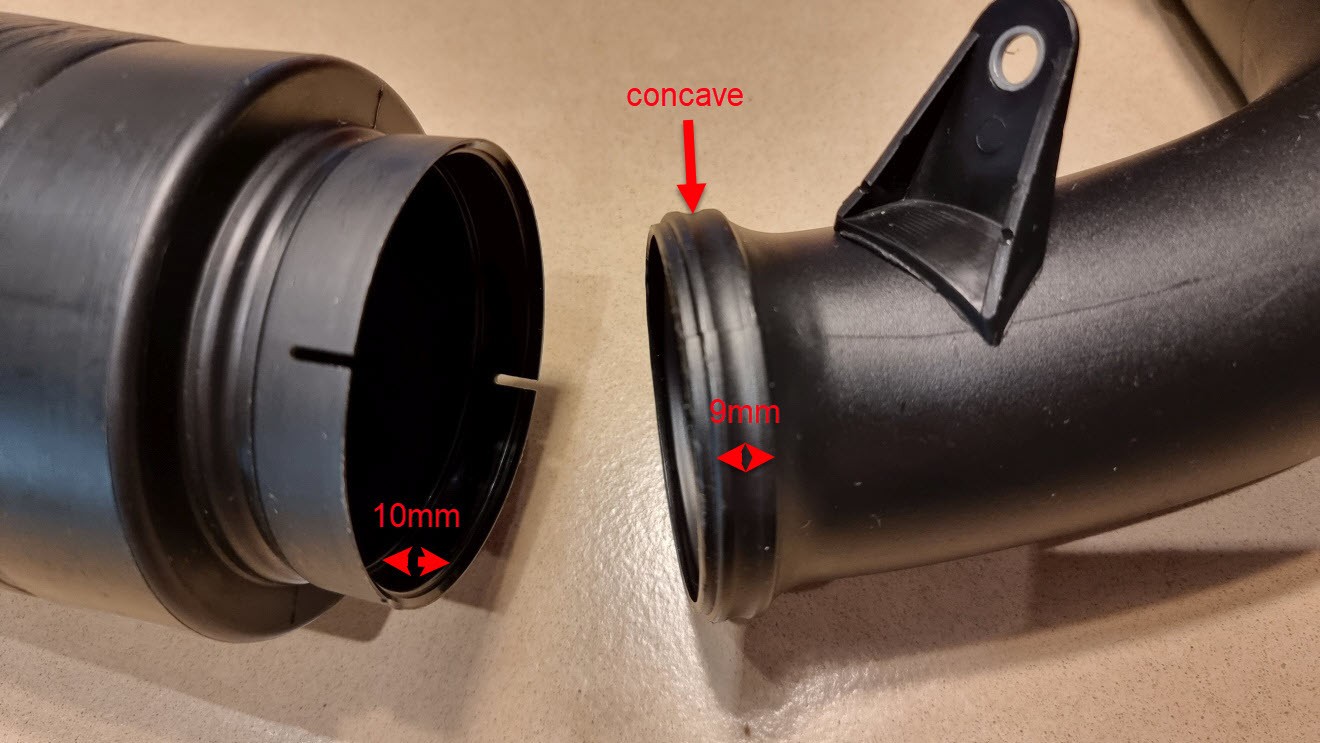 The connector on the foam intake manifold has 2 small raised ridges on the inside each about 1mm high and 10mm apart.