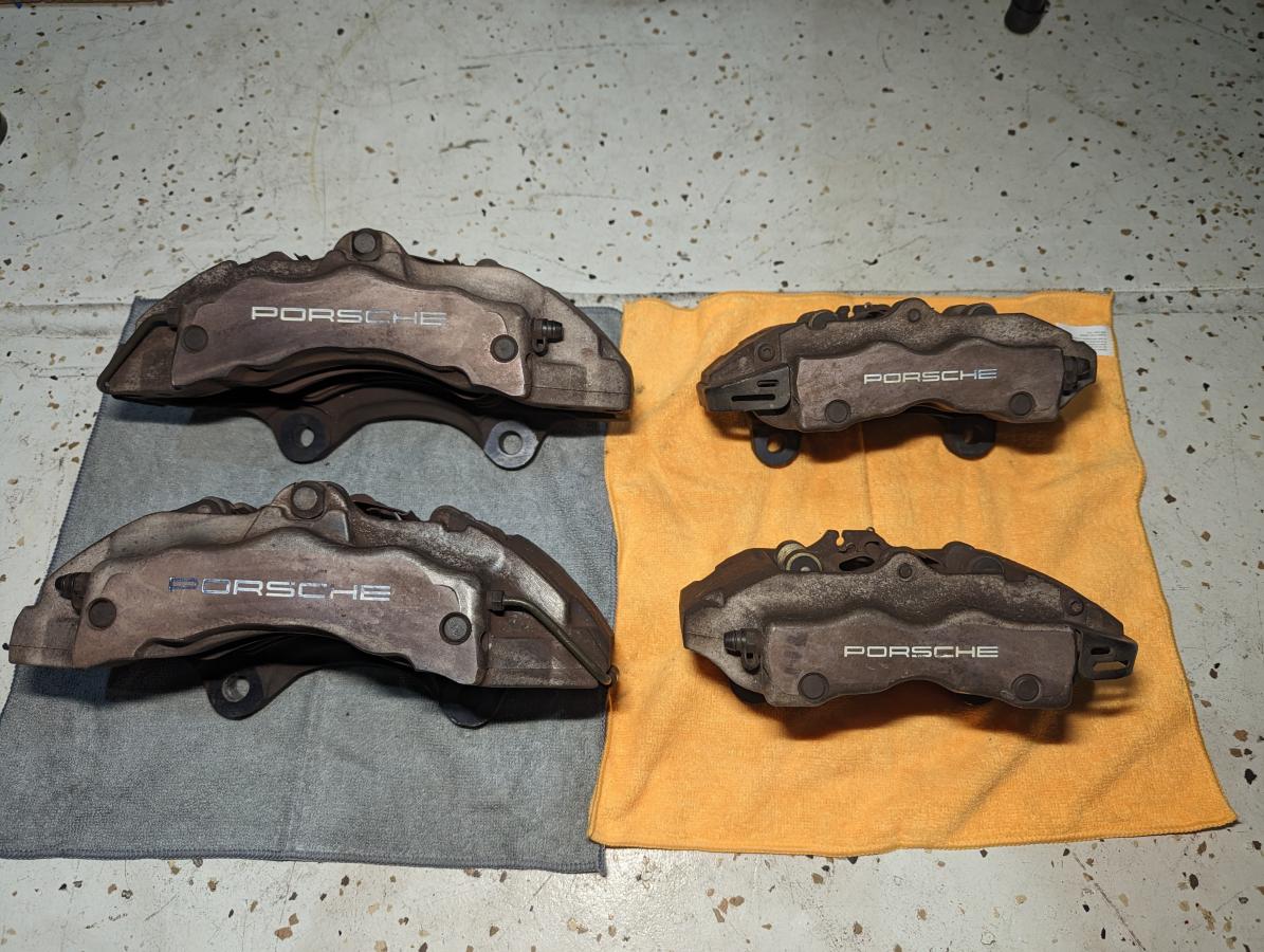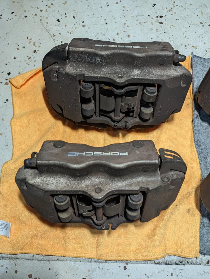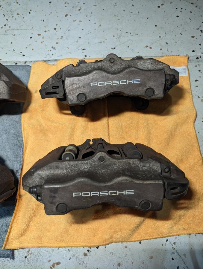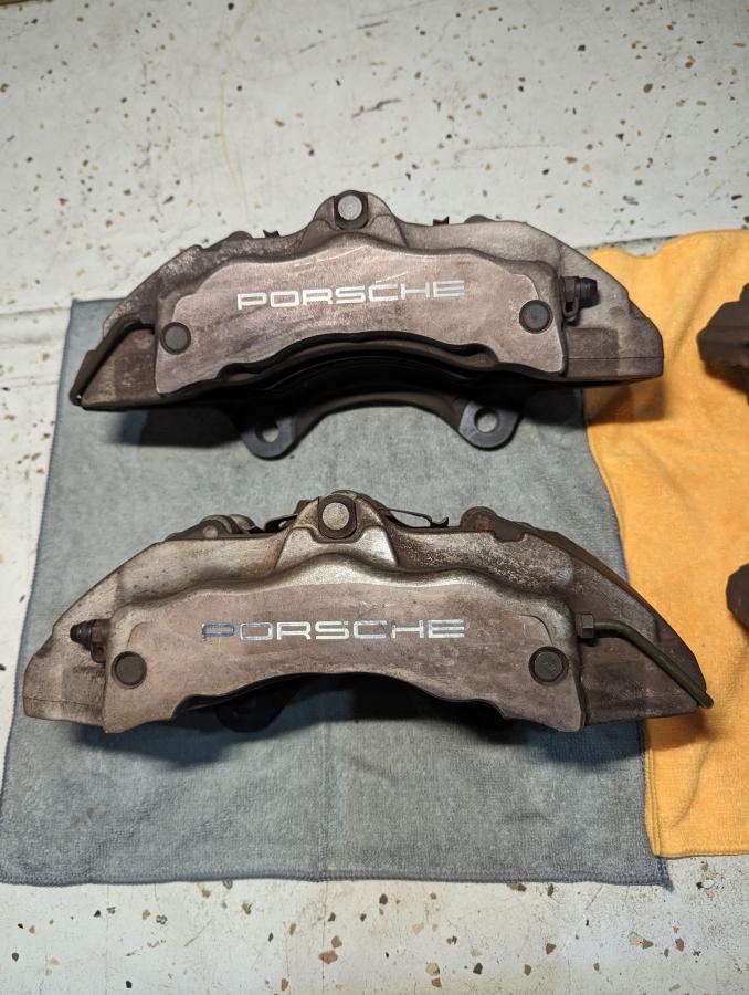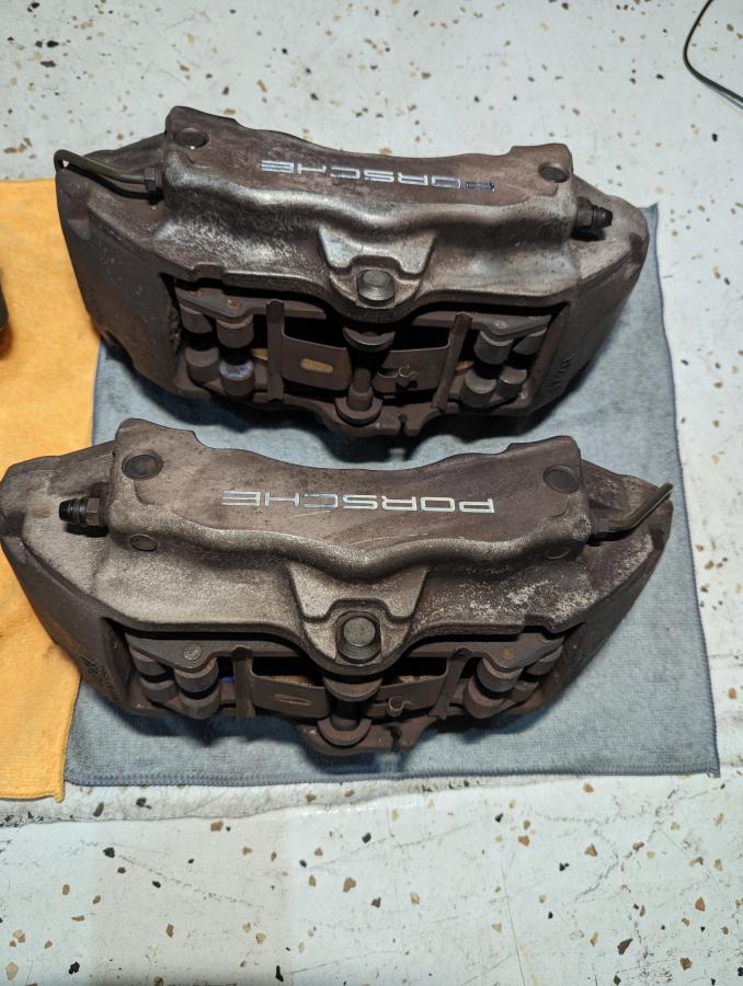 Selling these Cayenne 17Z calipers I was planning on using for a reverse engineering project but I decided it's not worth the time and went a different route. Calipers were in working condition when removed, Cayenne had 68K on the odometer but they've been sitting outside.