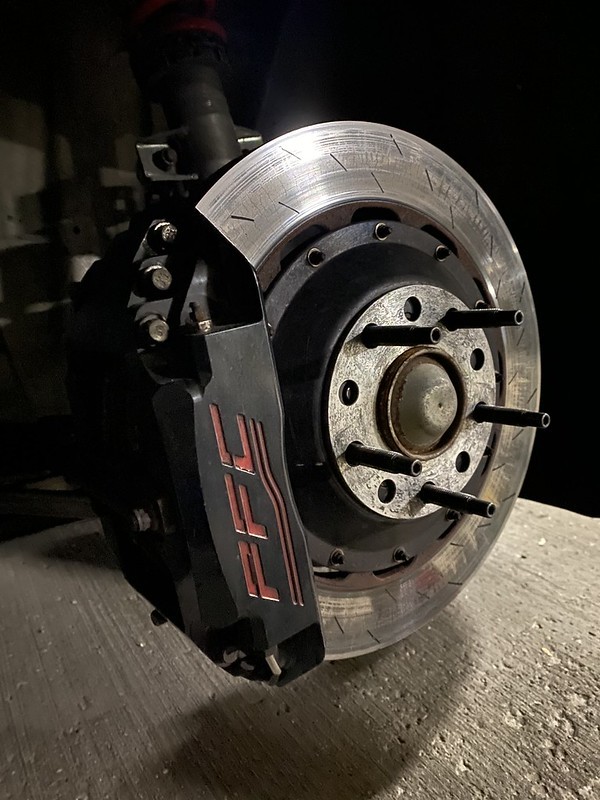 - Calipers: Original black finish with red logo from PFC, they clean up nicely. New bleeder screws were added prior to me purchasing the kit. Lines are also included.