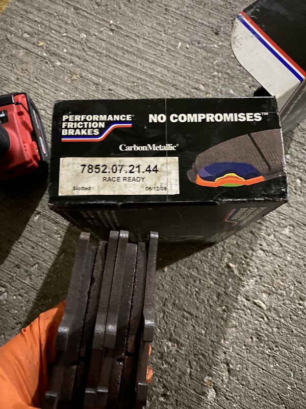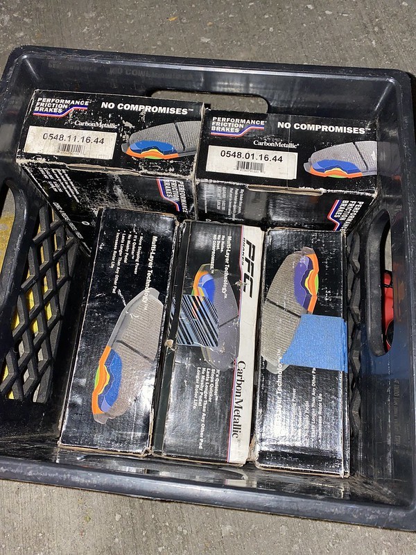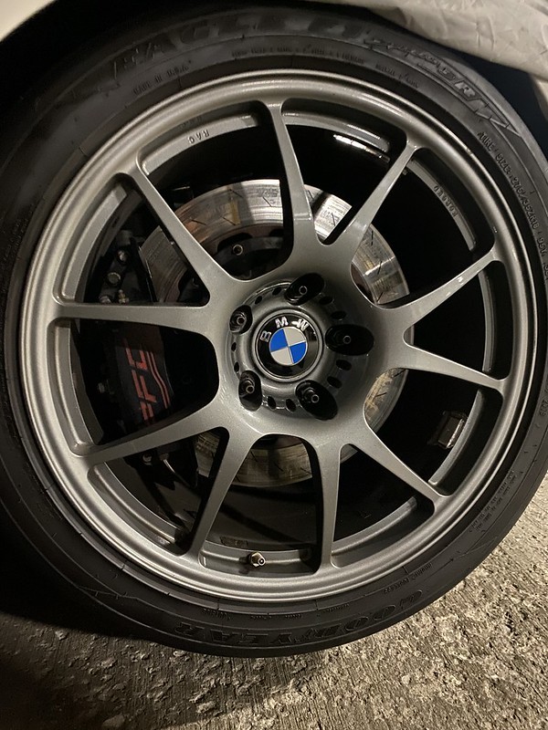 - Additional: OE M3 rear caliper setup available in matching color scheme, with brass guide pins and slotted rotors. Includes a set of OE street pads and 2 sets of PFC race pads (compounds: 01/11).