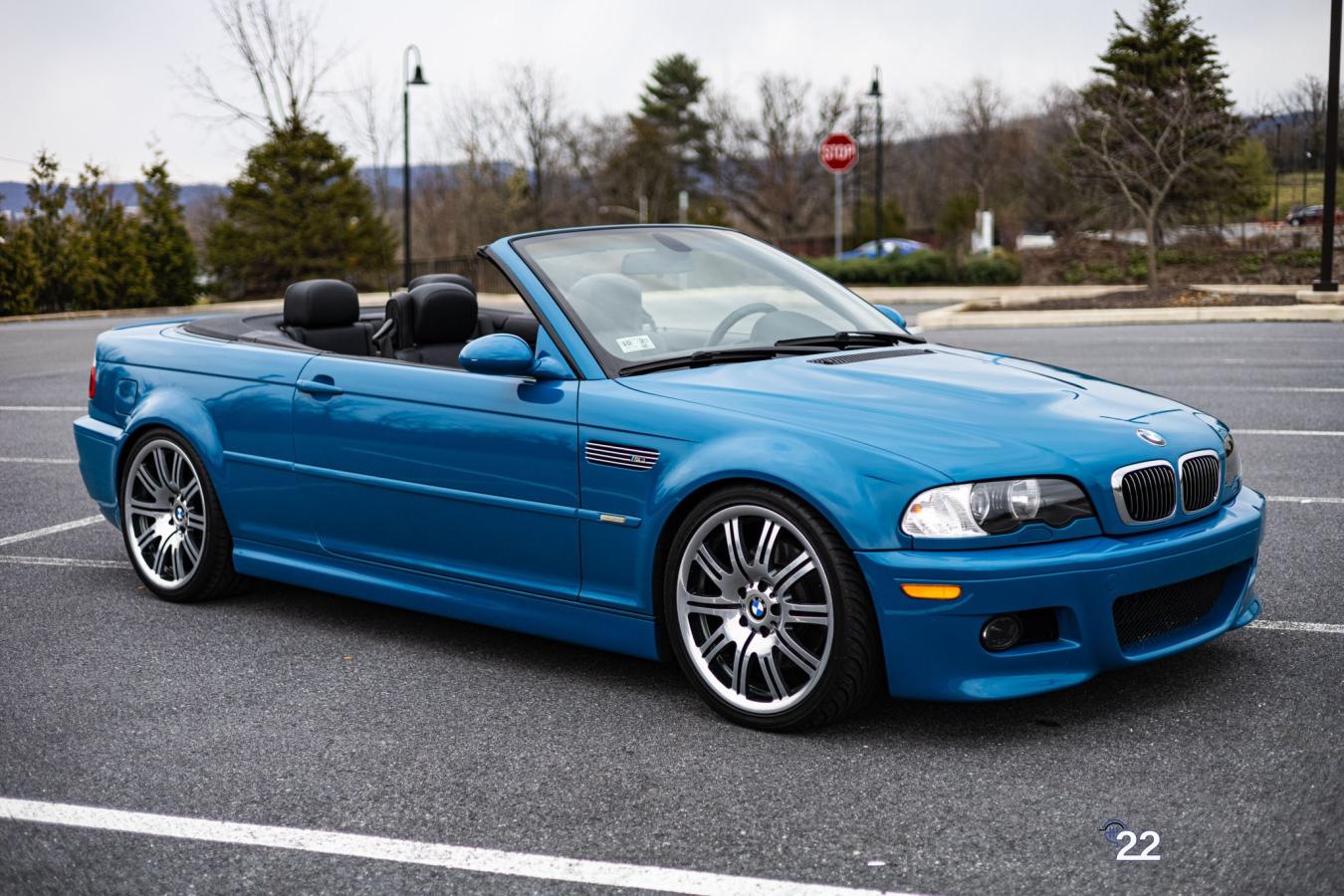 1 of 417 ever made, Laguna Seca Blue E46 M3 Convertibles with a 6 speed manual transmission and Black leather interior.