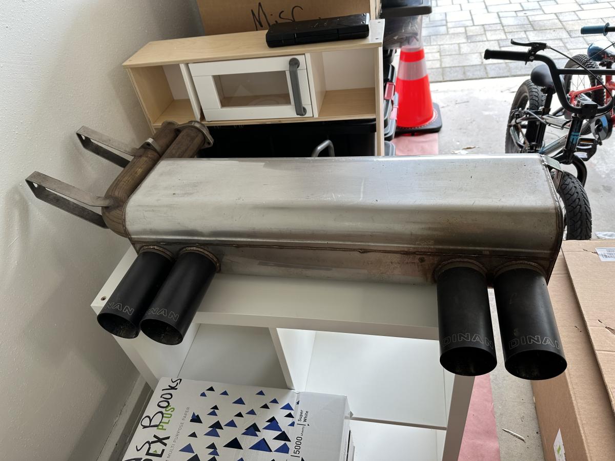 Dinan Section 3 for sale with ~2,500 miles. I purchased this from someone in Las Vegas and had it driven to LA. I had committed to this purchase before I found a near mint / practically new Dinan Section 3 a few weeks ago, so I now have this extra muffler lying around.
