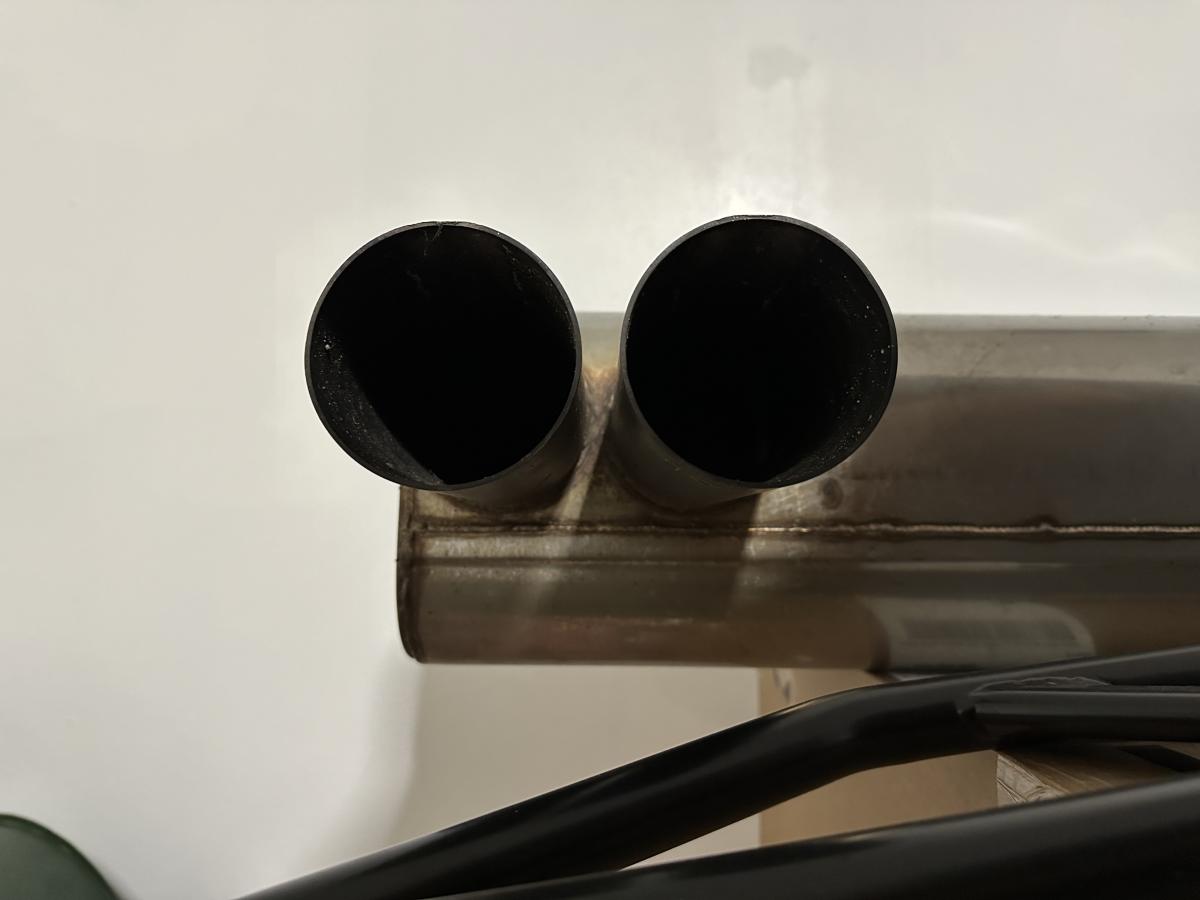 There are some small scratches on the underside of the tips. Aside from these, the muffler is in great condition with no dents, repairs, bends, dings, etc.