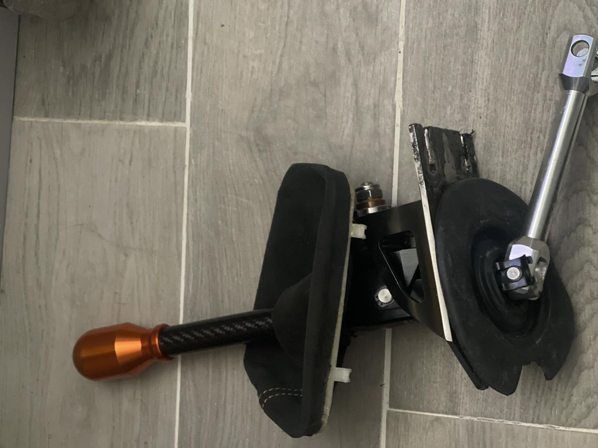 This model you don’t have to modify the center console or any trim pieces. It will come with anodized orange knob with a custom shifter boot and ebrake trim, and a trimmed dust boot for the transmission tunnel.