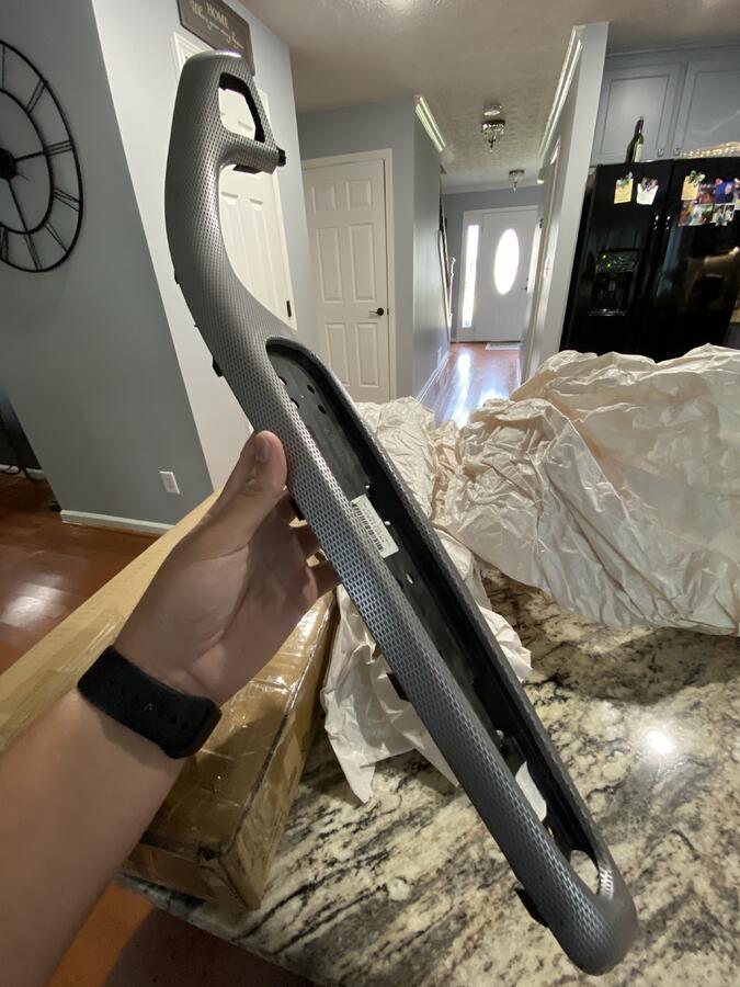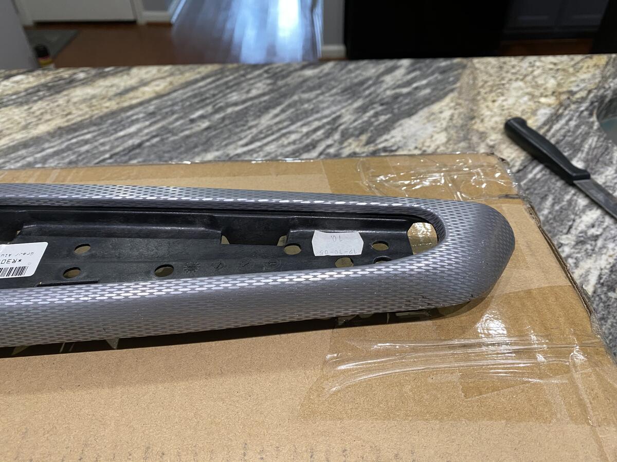 overally I’d say 9/10 condition. There are a few marks here and there, but they won’t be noticeable once it’s installed. All clips are intact and in perfect condition.