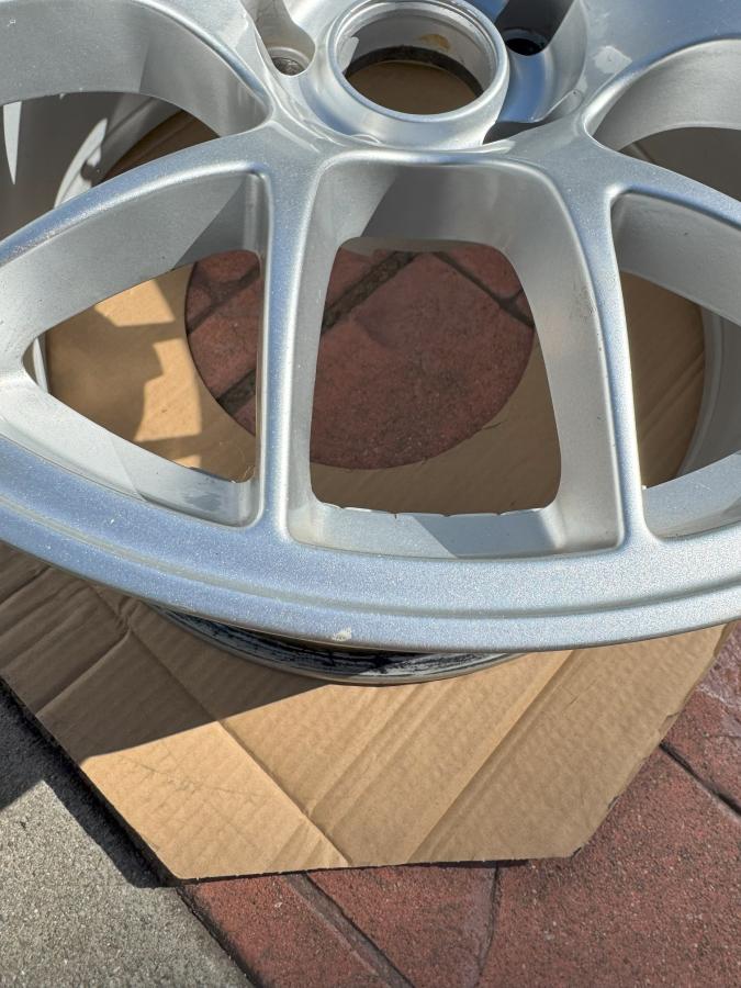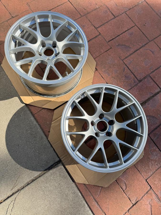 Wheels are in good condition with no bends. 1 wheel has minor curb rash and the other wheel has been repainted in race silver (slight orange peel).