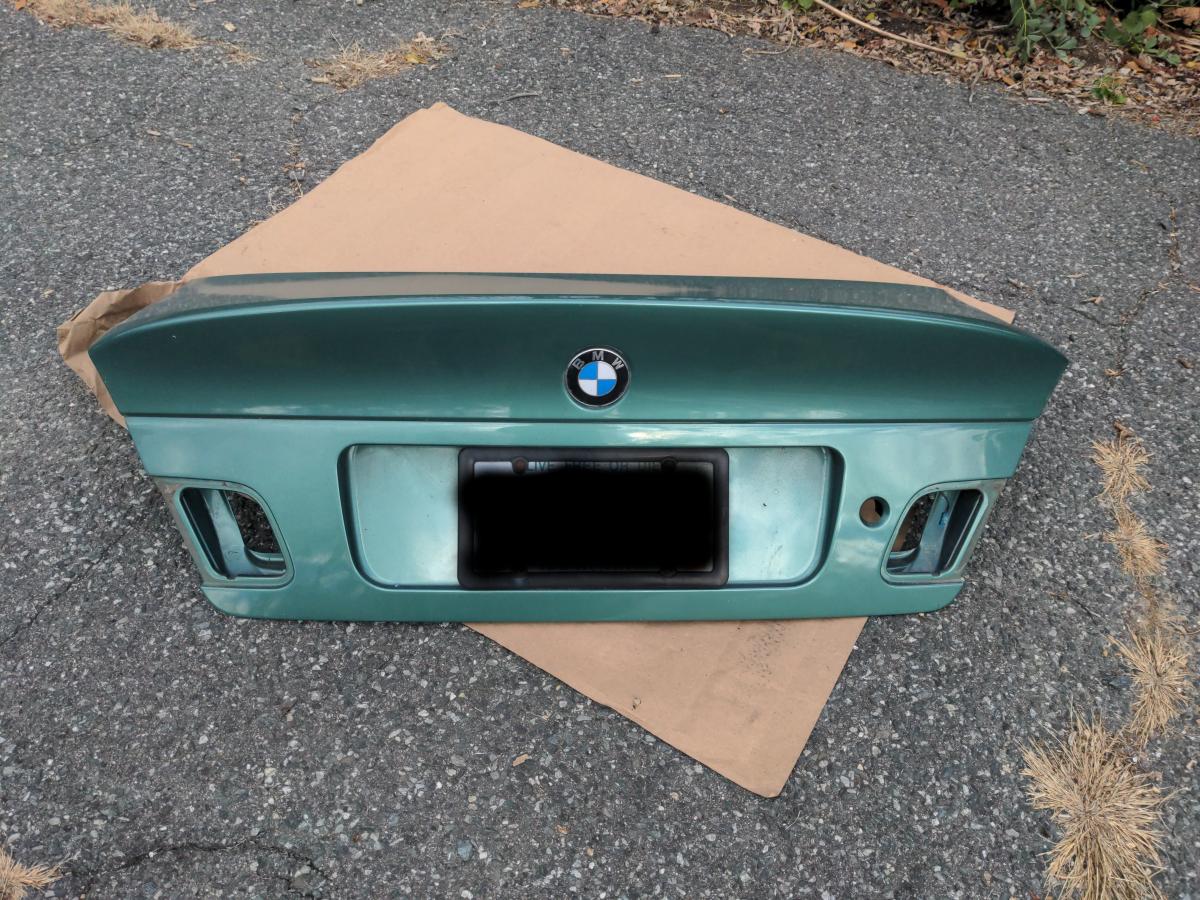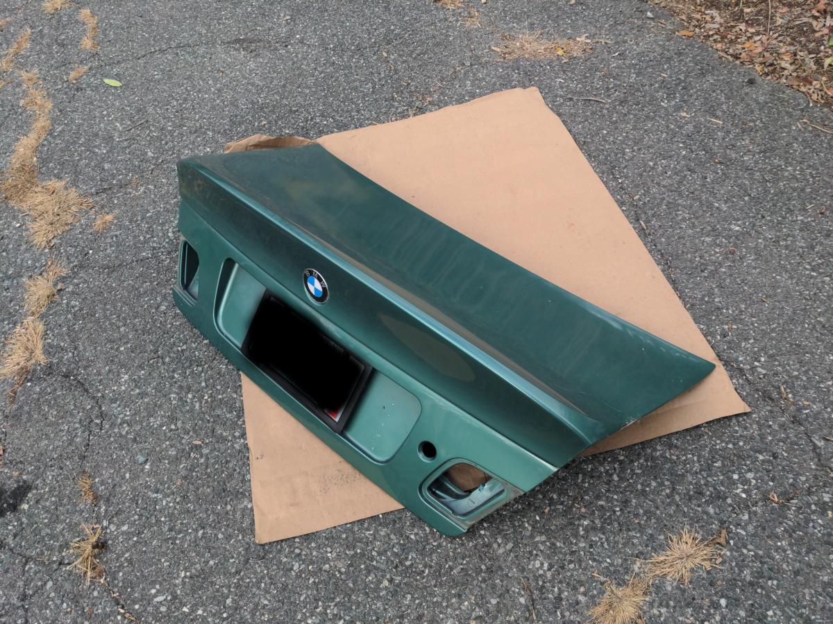 Hey guys. Switching my daily M3 out for an E39 wagon, so I have some mods to part out. This listing is for my OE CSL trunk, P/N 41007895884, which I purchased from the dealer. It's painted Aston Martin Almond Green, so will need a respray. Currently it's Southern Polyurethanes (SPI) Universal Clear over Motobase LV base over SPI black epoxy primer over the factory primed glass.