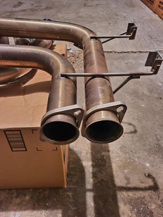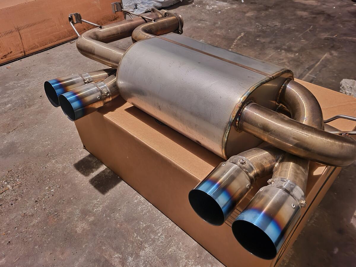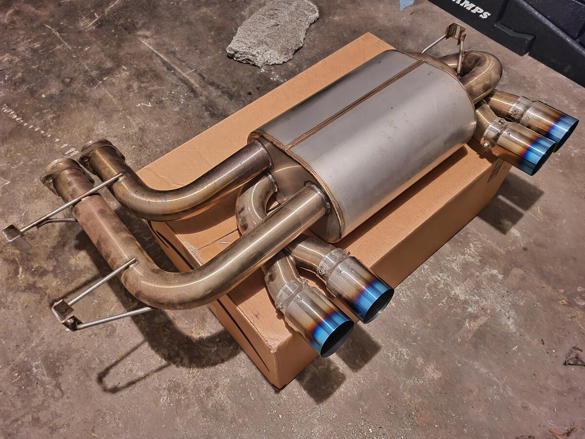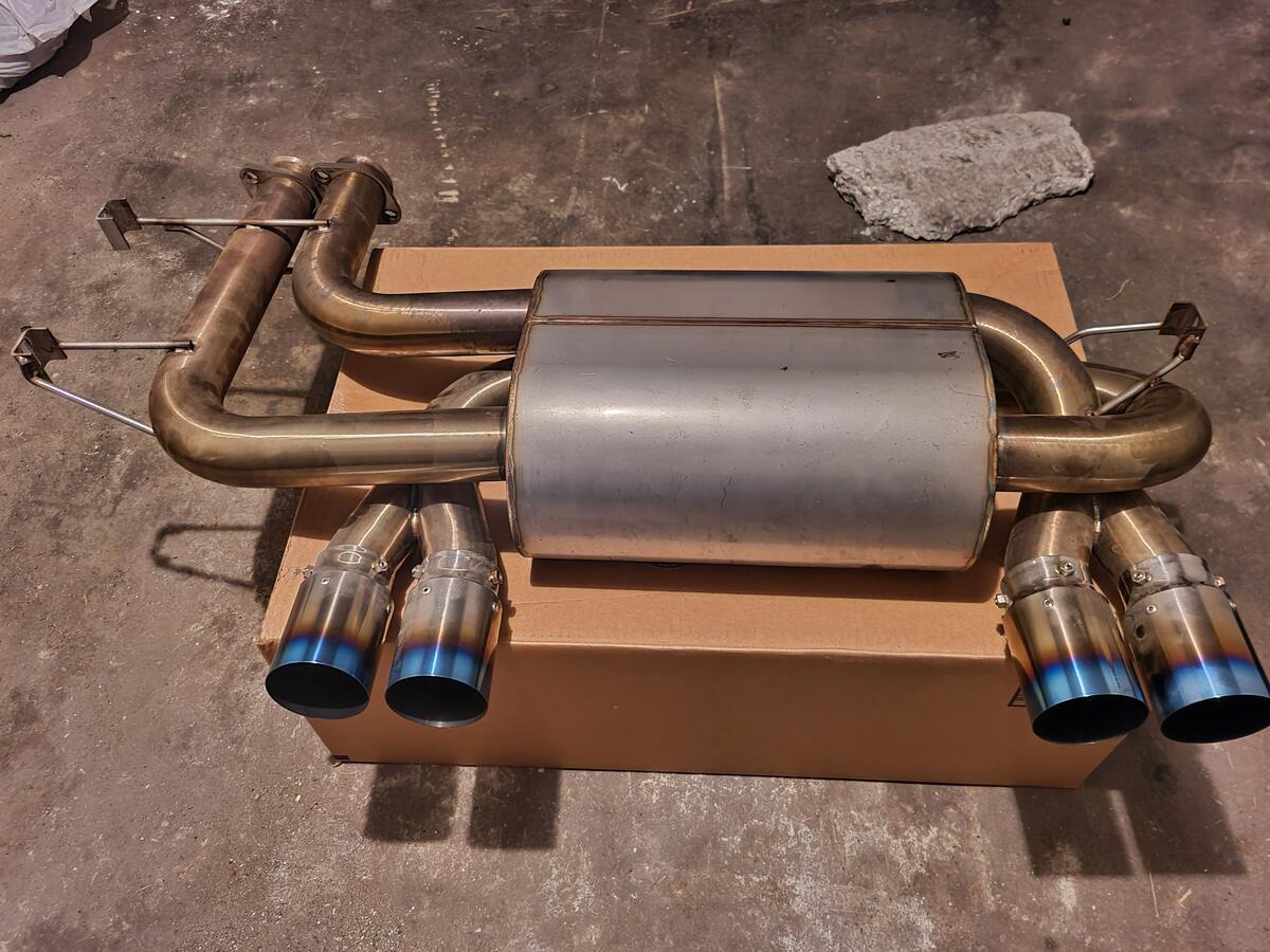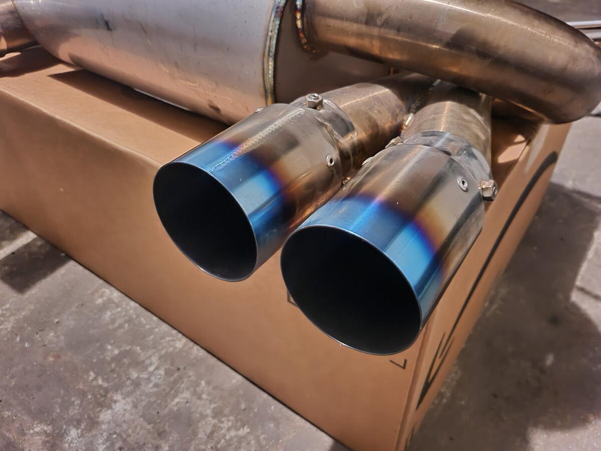 Like new section 3. had on the car for 1500 miles. moved to something different. fitment perfect, tips line up fine. they are 80mm titanium burnt/blue finish tips.