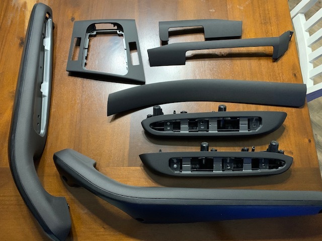 Up for sale is a full set of freshly wrapped E46 M3 trim in a nice black pattern. As you can see in last two pictures, two of the tabs are broken on the drivers side door panel armrest, but it does not affect installation.