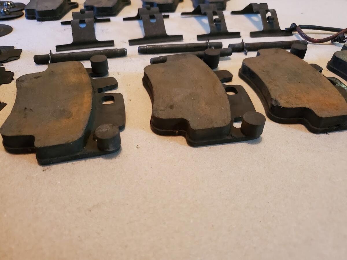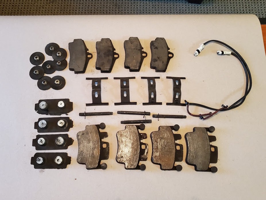 Includes a set of nearly new pads, caliper hardware, pad dampeners and pad wear sensors.