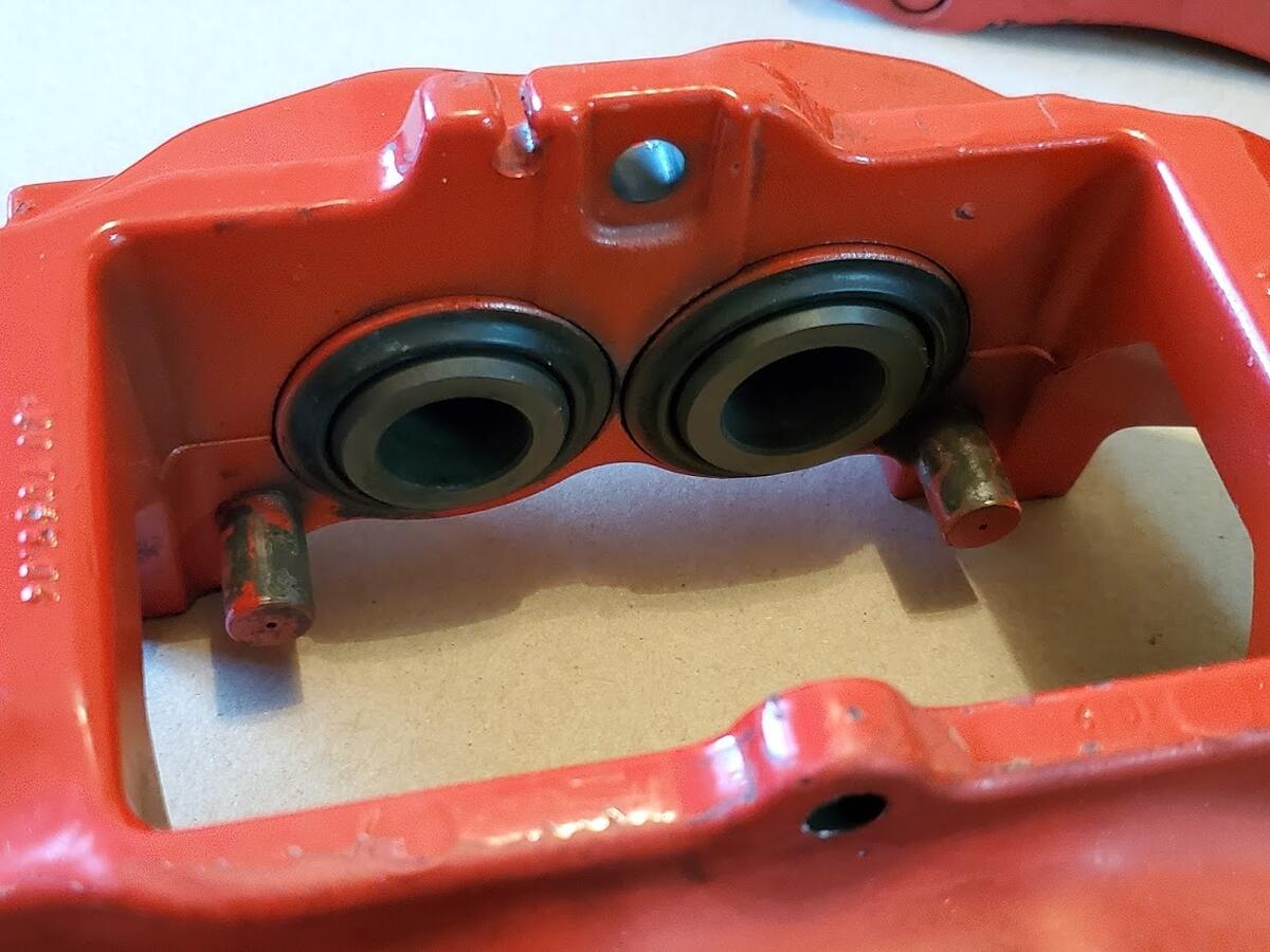 Cosmetically, the paint is faded and bubbling in a few places on the calipers. Most people will want to paint the calipers before install. No major damage to any of the castings. 1 bleeder screw cap is torn.