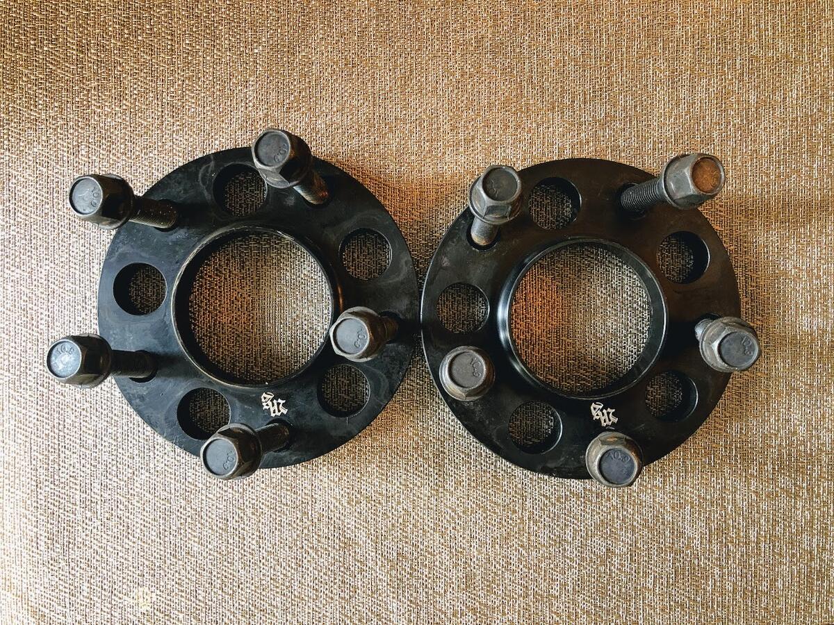 Selling a pair (2 spacers) of Macht Schnell 18mm spacers with extended lug bolts (12x1.5). Spacers are in good condition. No longer needed, went with 15mm for the proper fitment.