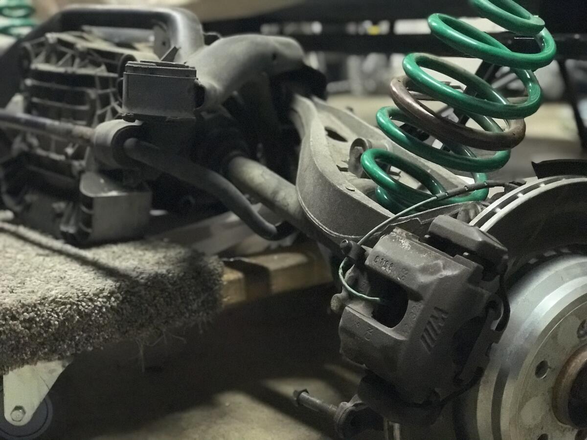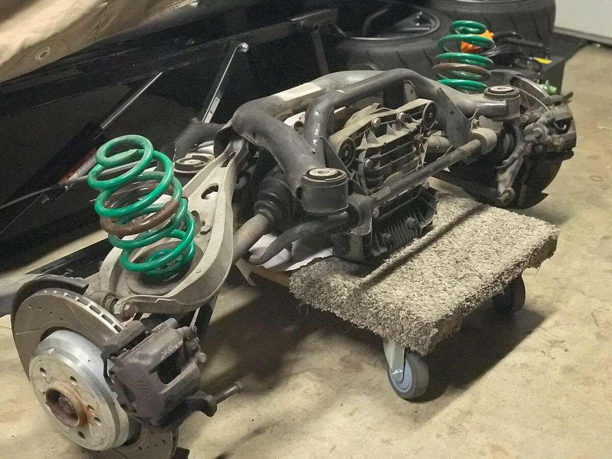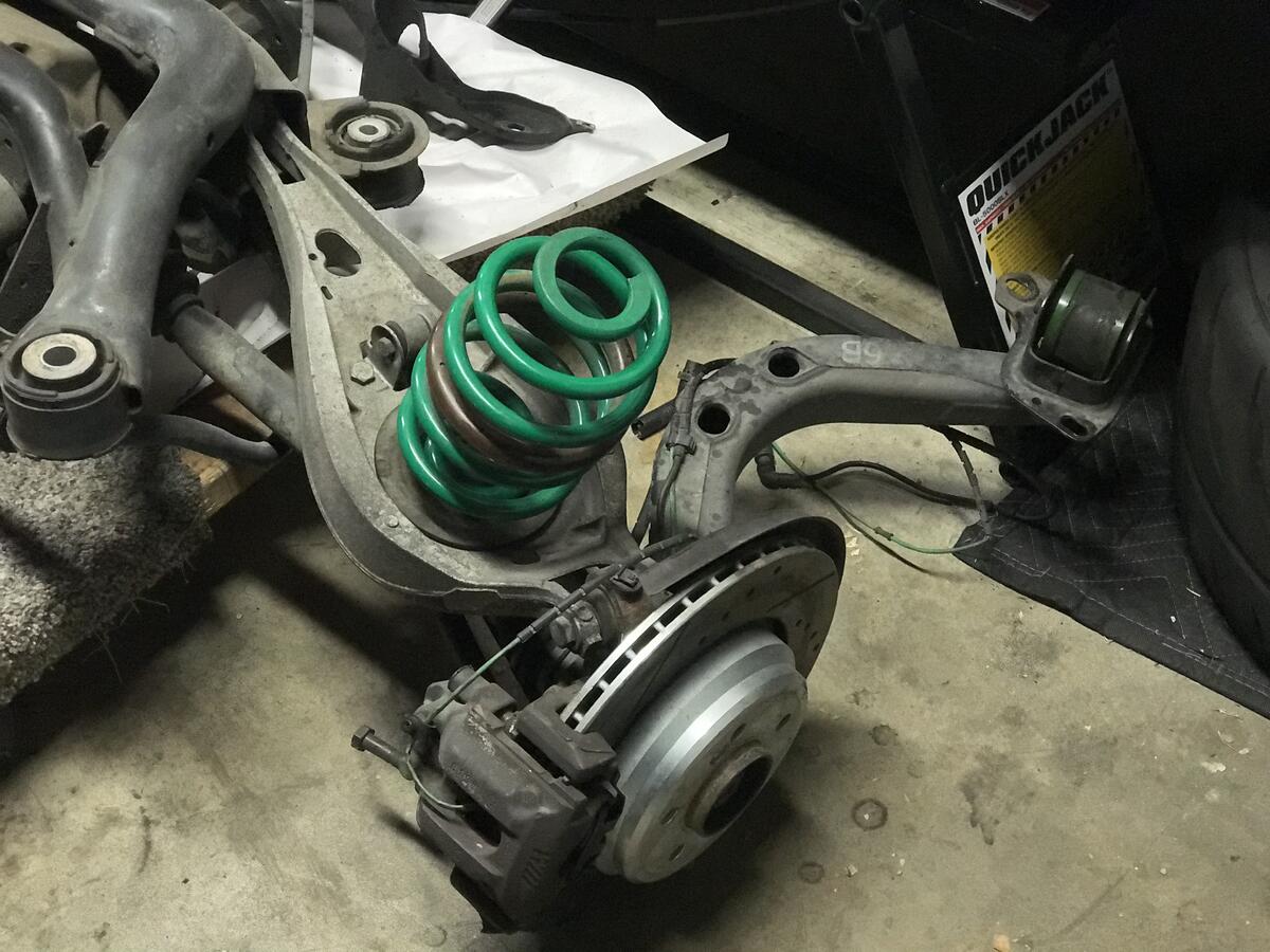 Available for purchase is a used OEM E46 M3 rear subframe with OEM 3.64 LSD and M3 axles pulled from my personal 2002 E46 M3 Coupe with 162,XXX street miles. It includes upgraded Rev-Shift polyurethane RCAB bushings, ECS differential drain plug, drilled and slotted brake rotors, and Tein rear lowering springs. Zero leaks, no strange whines or clunks prior to removal. It can be installed as-is, but I would recommend replacing the aged OEM differential bushings and subframe bushings.