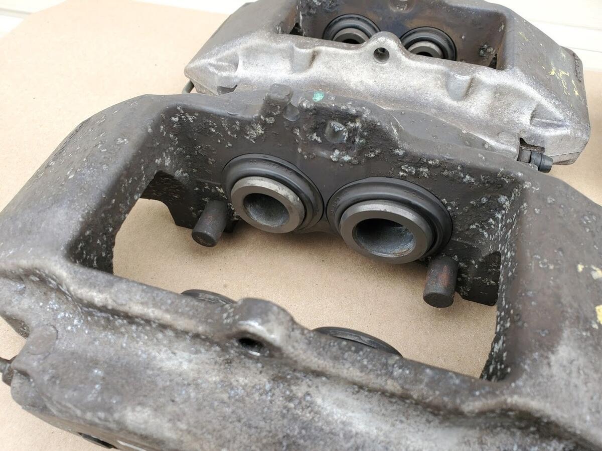 2 sets of calipers available, they are nearly identical. These calipers are as-removed from a Porsche, so they will need to be reworked before installation on an E46 M3.