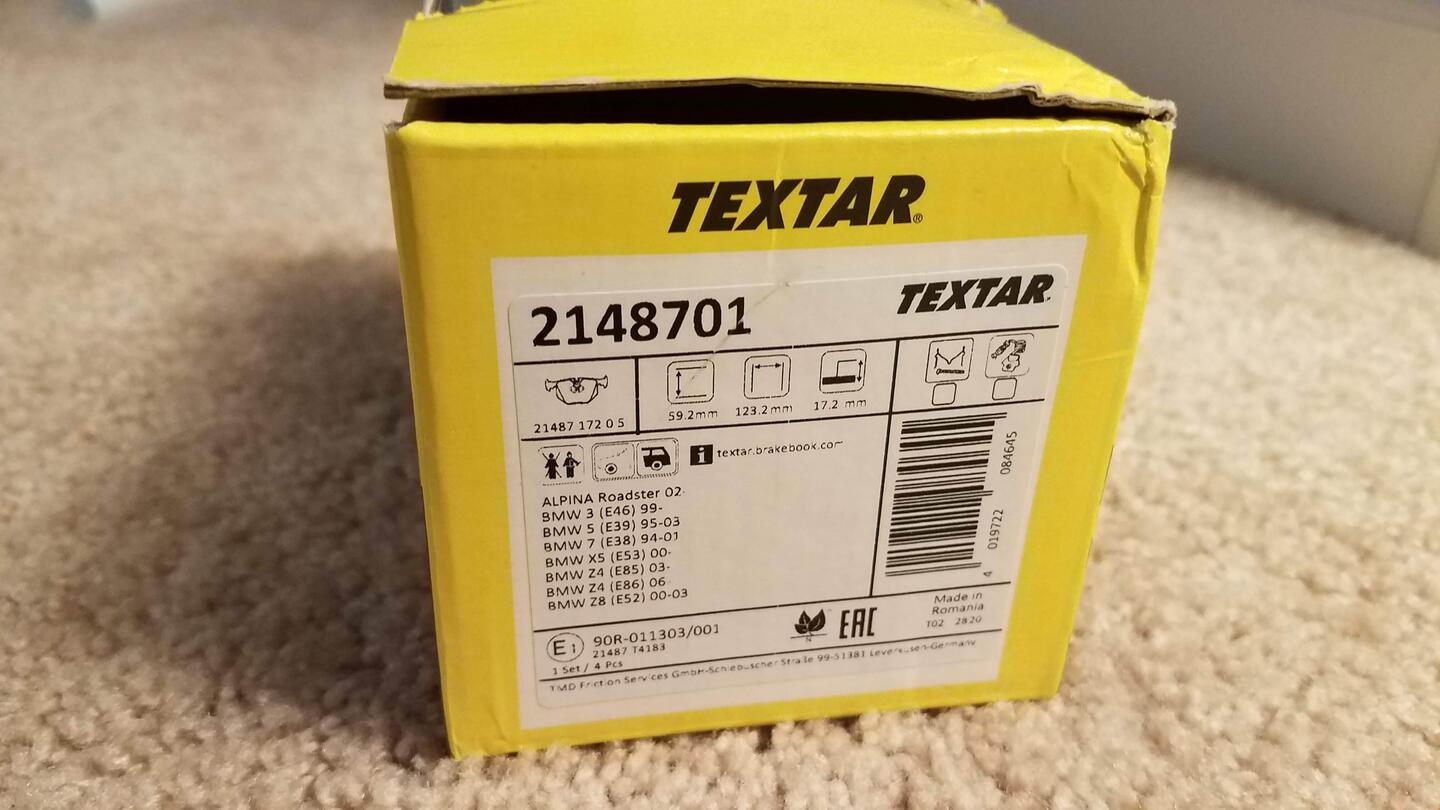 Selling a set of E46 M3 Textar rear brake pads. These are new in the box.