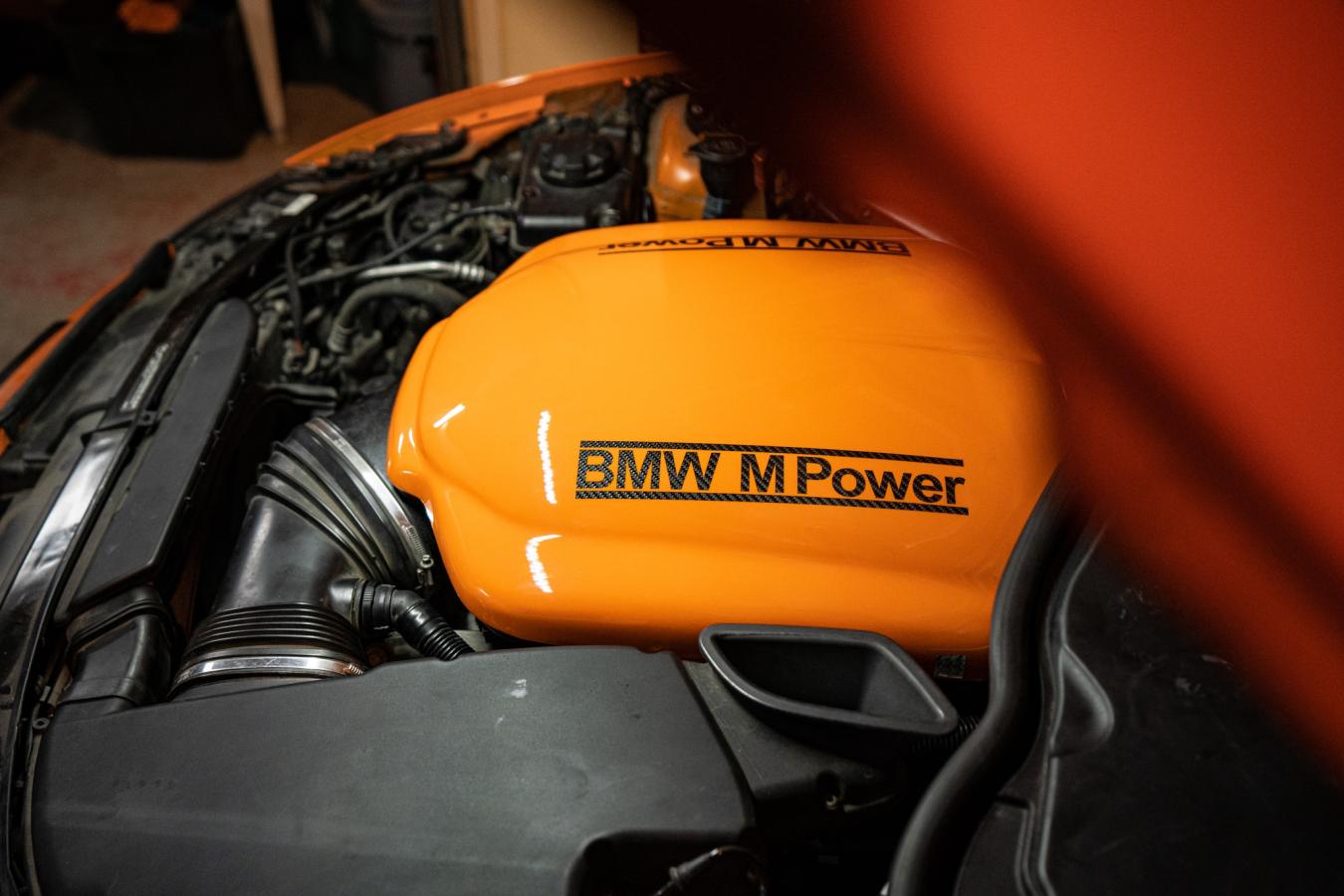 The original M3 GTS had a unique touch in the engine bay with its color matched plenum lid. Yet it was plastic, far removed from the expectations of the S54 CSL’s carbon airboxlegendary induction noise.