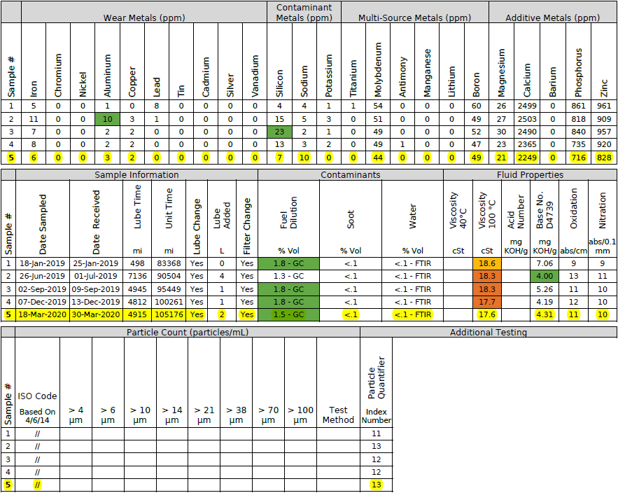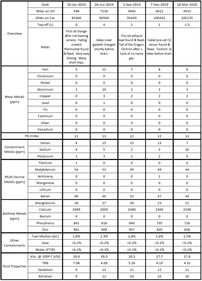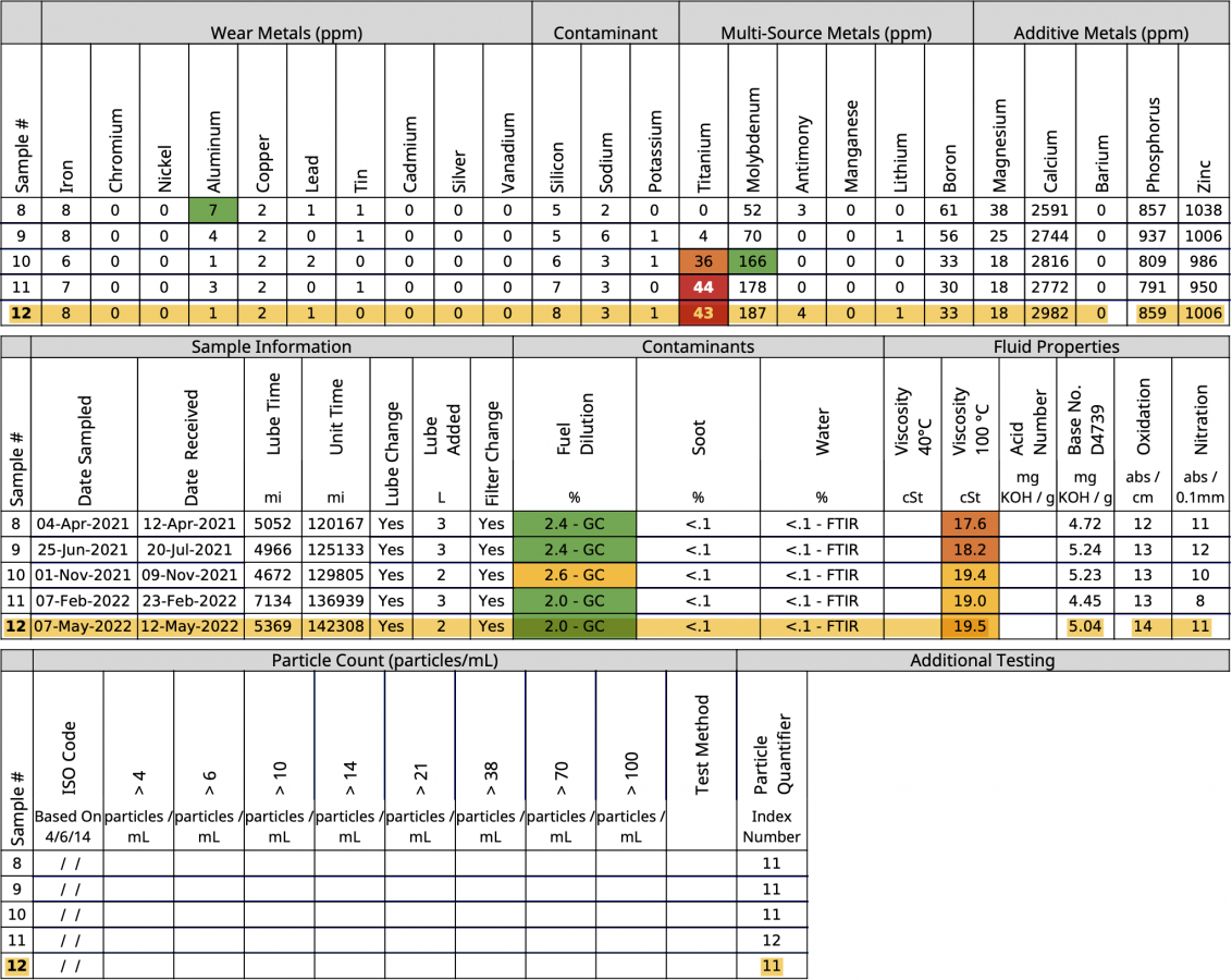 Given all that, I imagined I'd see record-breaking fuel dilution, elevated silicon levels, and potentially elevated wear metal numbers. Not sure if I should be happy or puzzled that none of those panned out...