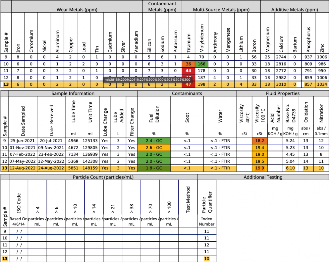 In the pic, fuel dilution in a previous sample is blanked out because it turned out not to be reliable.