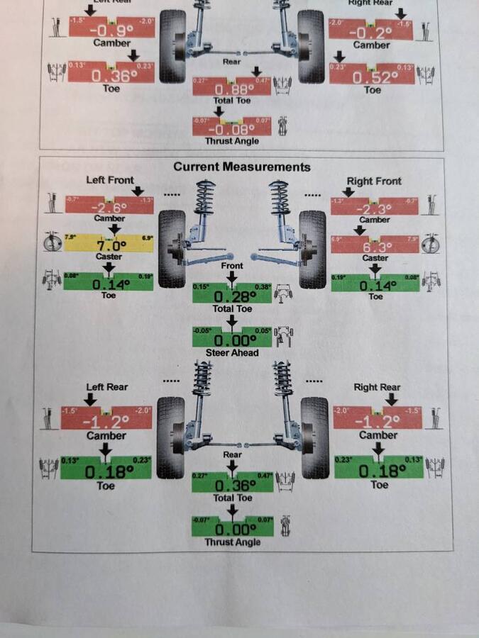 So the shop that was performing the alignment on my car basically had to set the ride height to stock because the rears are rubbing (right rear particularly). I will post a pic of the alignment specs but I'm not sure now what to do...