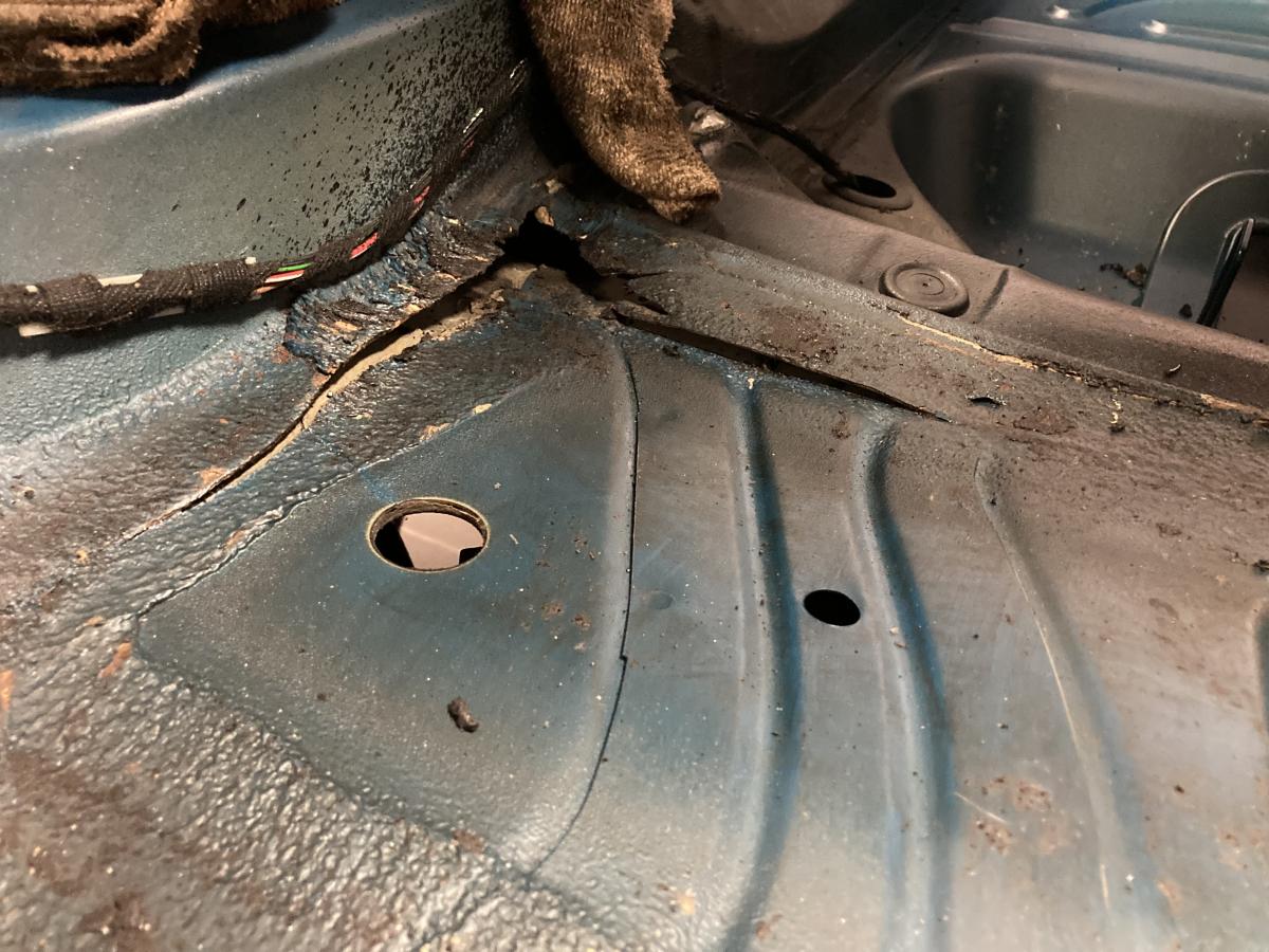 The car previously had Turner plates welded. Than, when spot weld start to pop, someone tought it would be a good idea to fix it with undercoating… So problem got worst and it look like this now: