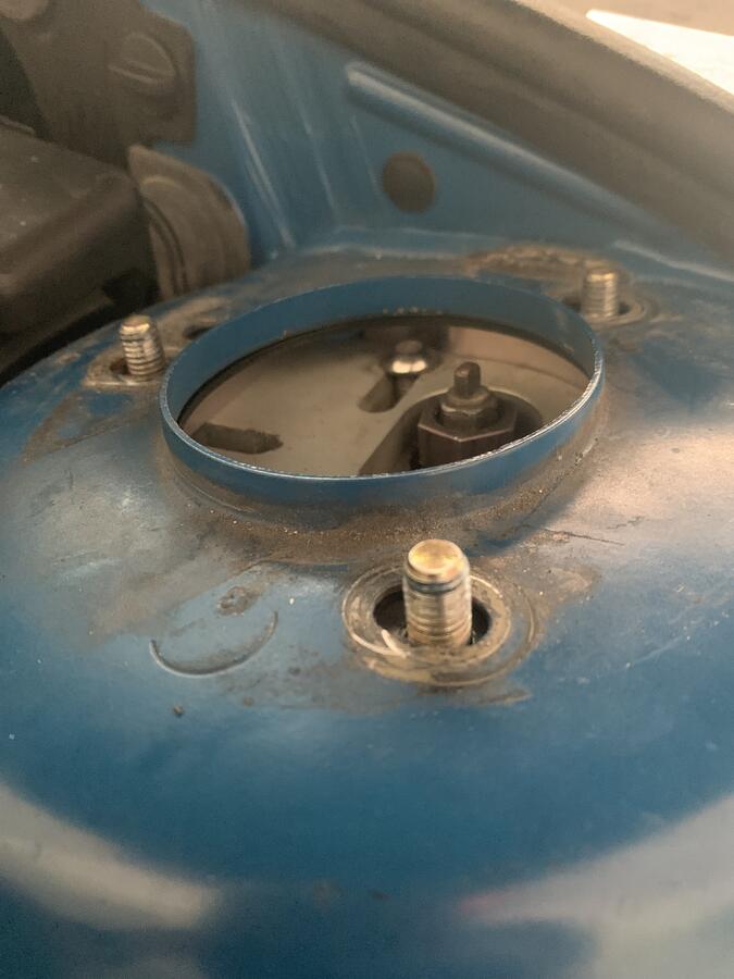 I recently swapped out my ACS Strut bar for an OEM one. I lifted the car because I had to do some other things, loosened the three top strut nuts and slowly lowered the struts one-by-one on each side. On each side I have: the camber / caster kit, I don’t know what this next piece is called but it looks like a 3/4 circle (shaped like a letter c) and a strut tower reinforcement plate. I re-assembled everything, hand tightened the strut nuts then lowered the car to assemble the OEM Strut Tower while the car is on the ground.