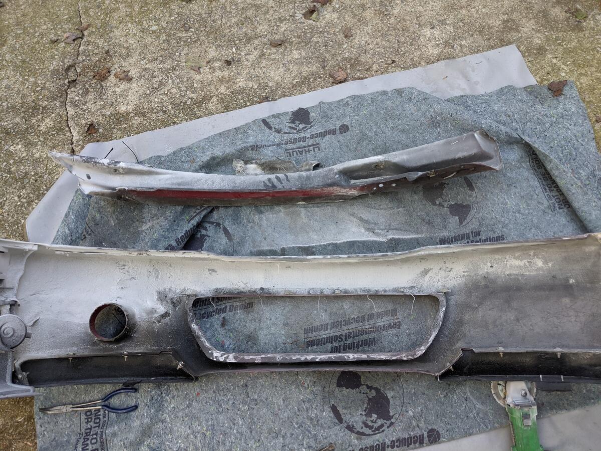 After that test fit, I cut the excess fiberglass on the top side of the bumper to follow the lines of the stock bumper.