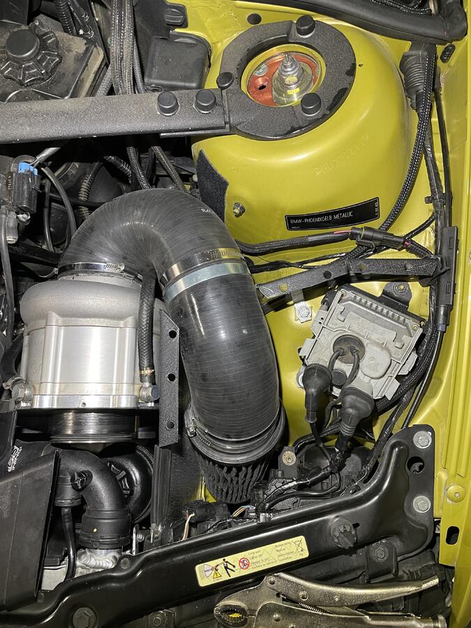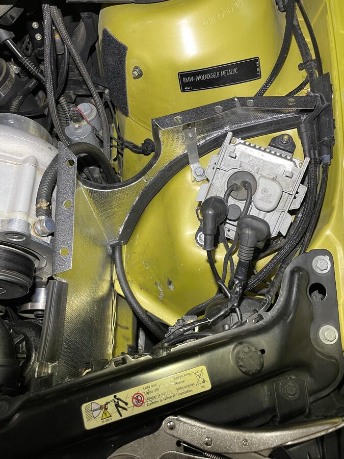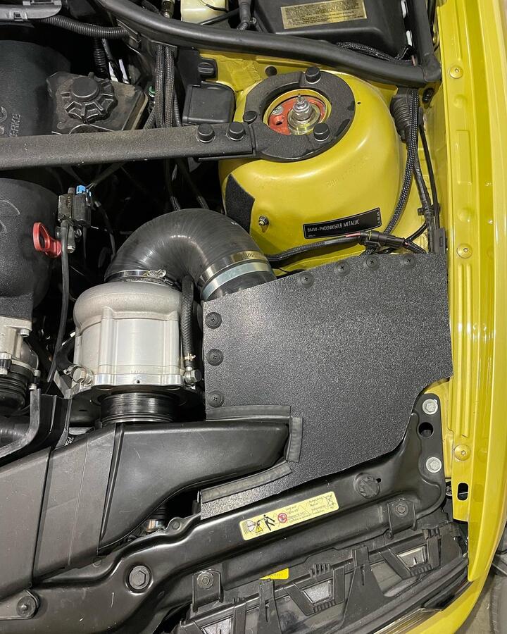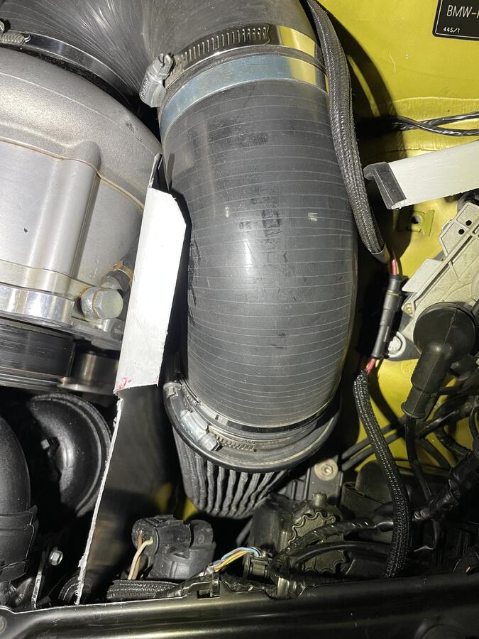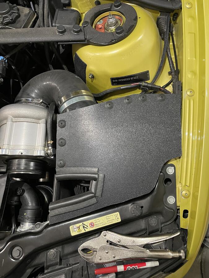 Air filter box inspired by the Dinan CAI. Fabricated from aluminum & ABS. Insulated and sealed to avoid picking up heat from the engine bay. New custom air filter is on the way!!