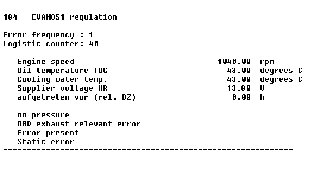0x43: DME: Inlet VANOS, advance valve 0xB8: DME: Function, inlet VANOS