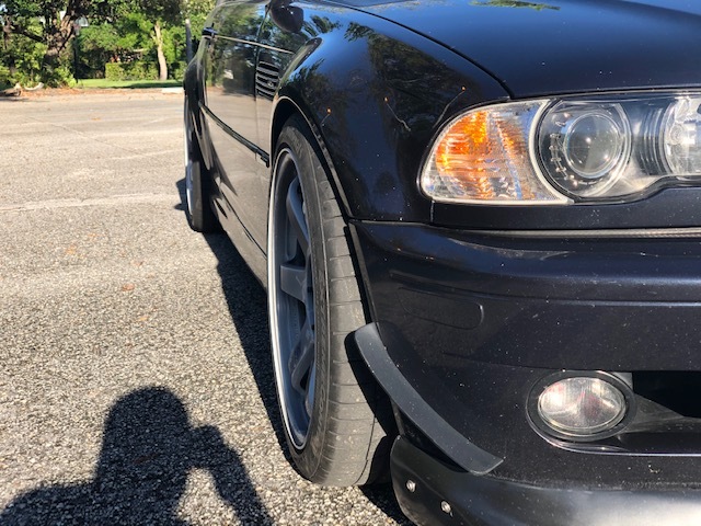 Pics below, sorry I don't have any better ones off hand, with being on quarantine/lockdown my access to the garage where i keep the car has been very limited. But you can clearly see how much further the drivers side wheel 'pokes'. The passenger wheel is perfectly flush with the fender, while the drivers is poking past it.