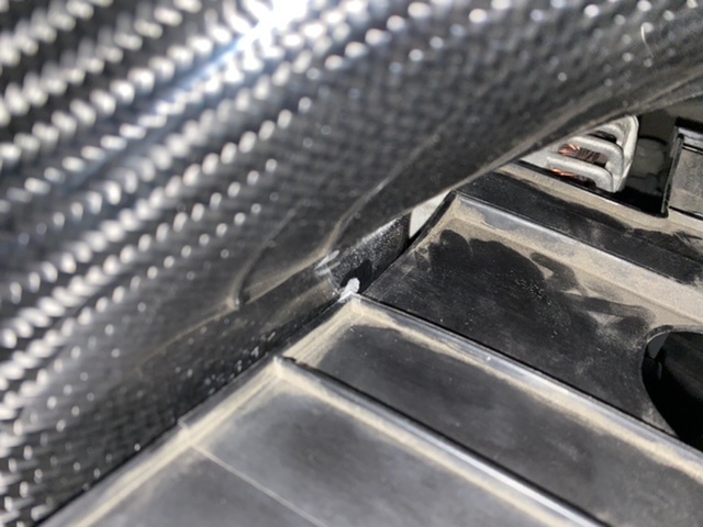 1. The fan shroud rubs against it at the front. I was very foolish and thought I could stick a few layers of shop towel pinned between the shroud and box at the contact point and go for my first drive and it'd be fine. I was wrong. Damage done. Is there anything I can do to repair this?