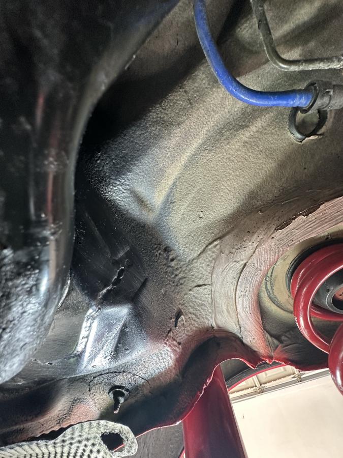 The cracks or floor seams separation in the photos are still in the early stage, and so I wonder if the squeaking noise could be from other areas that have longer cracks to cause the panels flexing more. I'm interested of what you will find more when the diff/subframe are removed