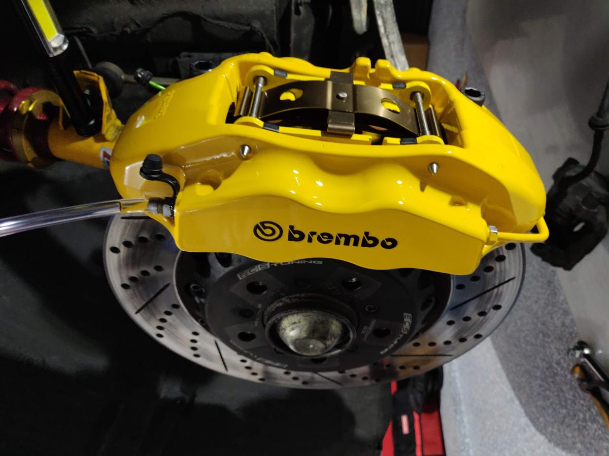 Just a side note: The Aston Martin DB9 front rotor is 30mm thick and when you use it on our 28mm rotor, the pistons are pushed out a bit more. I think this was pointed out by mrgizmo in another thread. While the new setup works, the brake pad life should probably not be fully utilized due to the 2mm difference. Probably negligible but just putting it out there.Last edited by Epsilon; 07-16-2024, 02:30 PM.