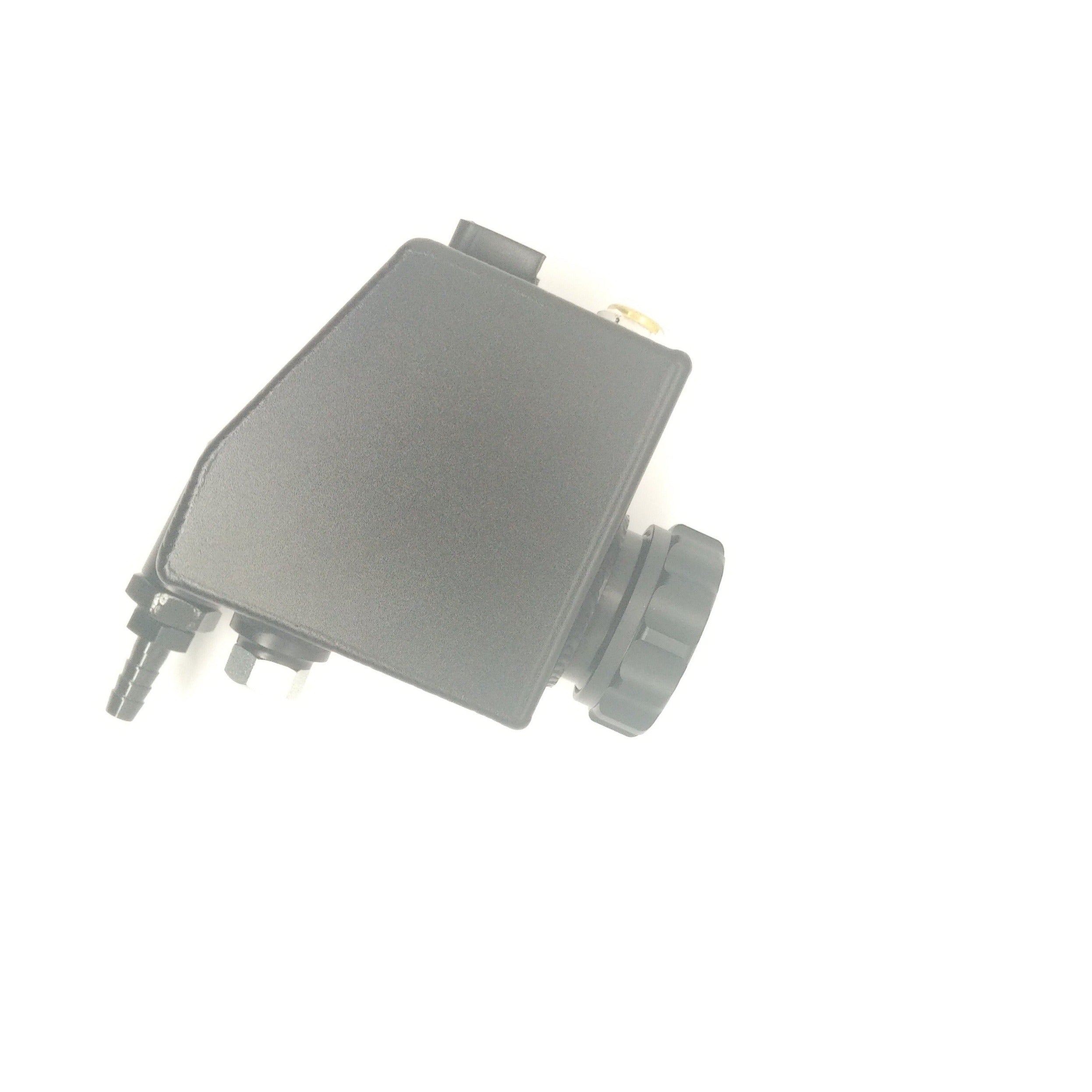 This is a NEW custom aluminum BMW E46 M3 SMG II expansion tank designed to allow for a remote mount location away from the intake manifold.