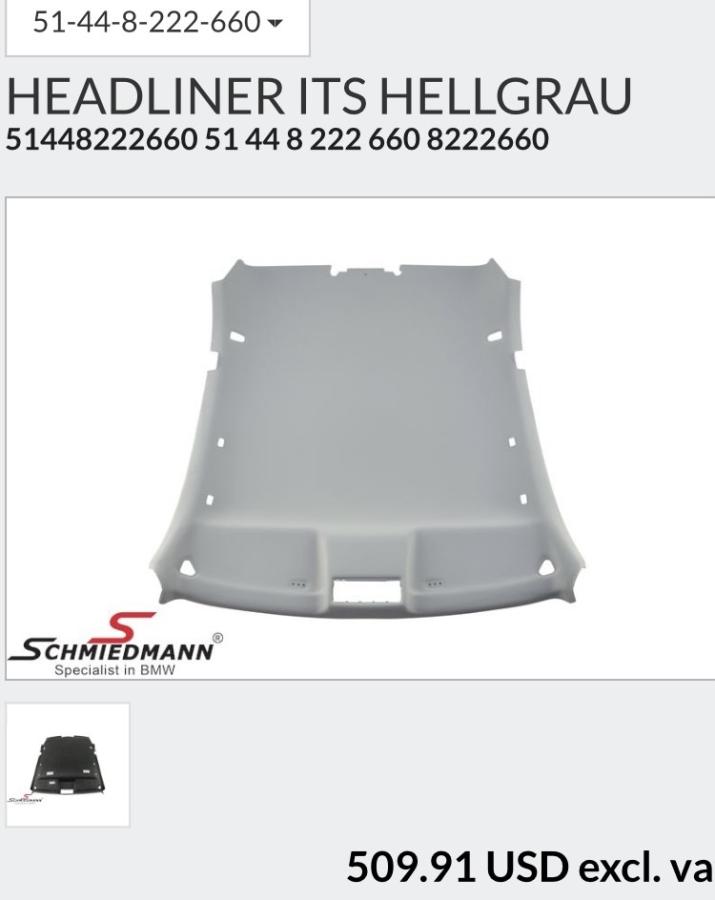 Looking at Schmeidmann Euro headliner your point is valid that my NA slicktop headliner is different enough.,and yours does not have same foam blocks. From what I can see it’s mostly just around the C pillar cut-out for foam. Digging a bit further to get more visual detail/contrast on shape I went into ETK and selected the gray Euro one. Even more interesting is that it this version has NO bump at all unlike the mold shown being used. Which has a more countoured gradient bump. I recall in old threads about the Euro headliner this being mentioned. This completely smooth one seems like should be the preferred Euro version?Originally posted by 0-60motorsports View PostI am very sure they were not there on my headliner. Now that the journal is lost from M3F……ugh I can't be bothered to look through Photobucket.