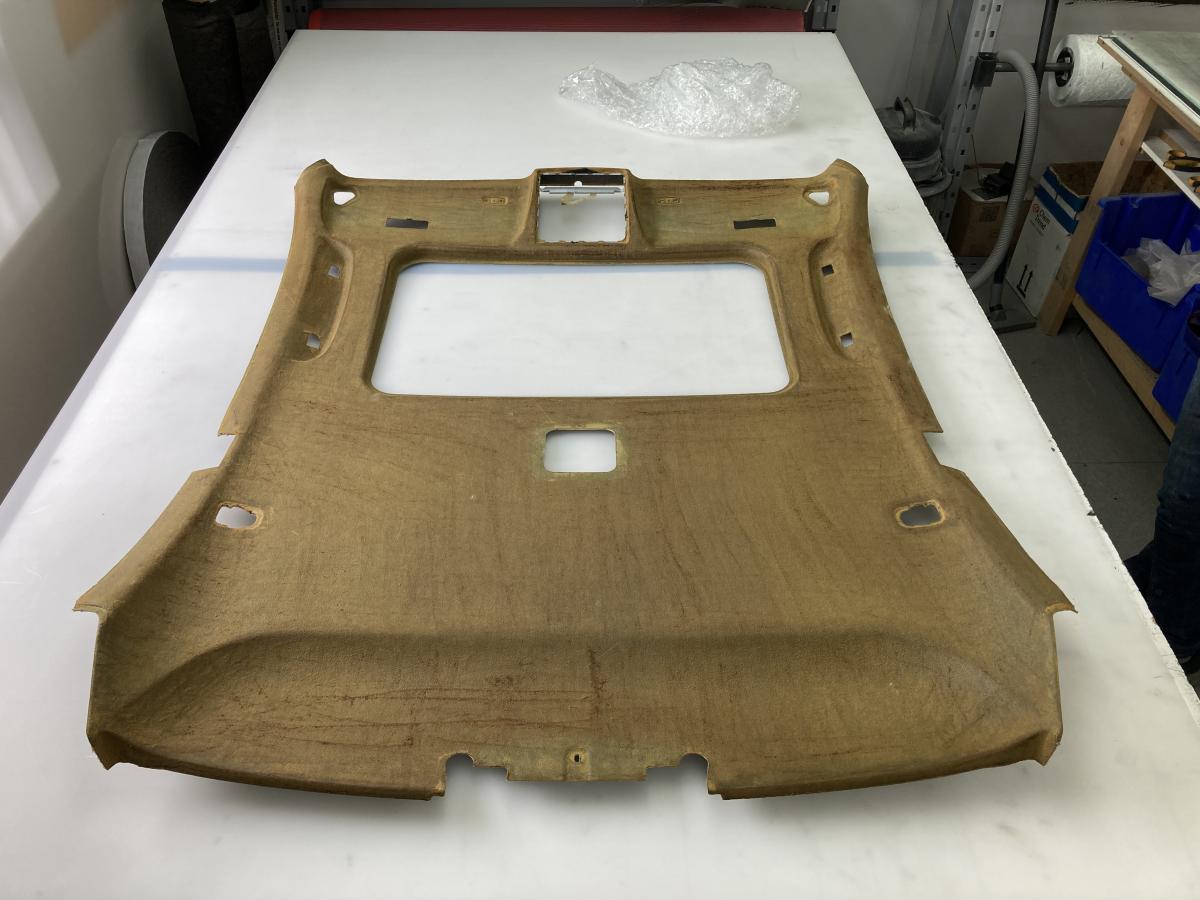 Yesterday I bring a spare sunroof headliner with fabric removed to JC. I asked him if he can block the sunroof opening on it so I can redo fabric after to install with a CF roof. He told me he can do this but would also be willing to do a mold for a complete headliner in composite.