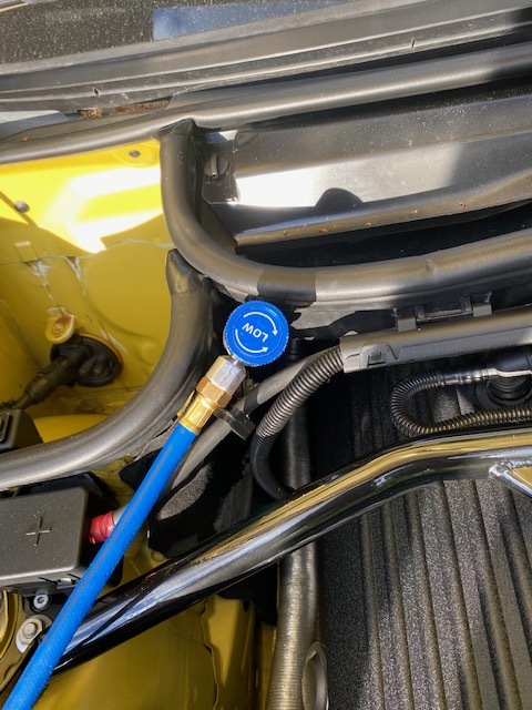 Step 5: Attach your low pressure coupling to the low pressure service port on the passenger side near the firewall.