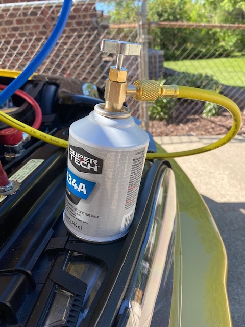 Note: When you borrow the AC manifold gauge, try to get the newest one they have and inspect all the green o rings on the attachments. They're commonly either missing or worn out which leads to system leaks.