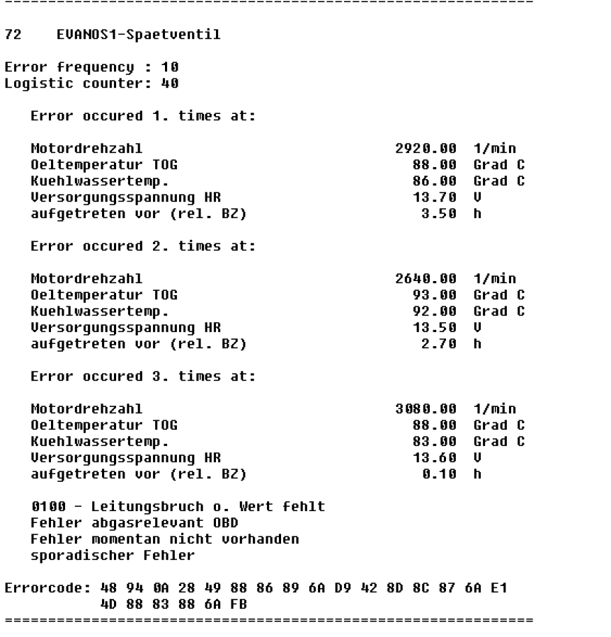 "Line break or value missing" is interesting to me. Can't tell if that's just generic text that gets tossed in there with the code, or if this is trying to lead me to a more direct cause, which would make me think solenoid pack over piston seals. I'd also expect bad piston seals to show poor VANOS test results.