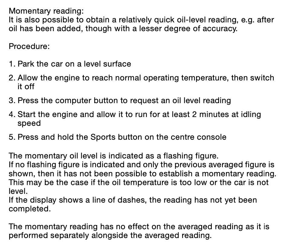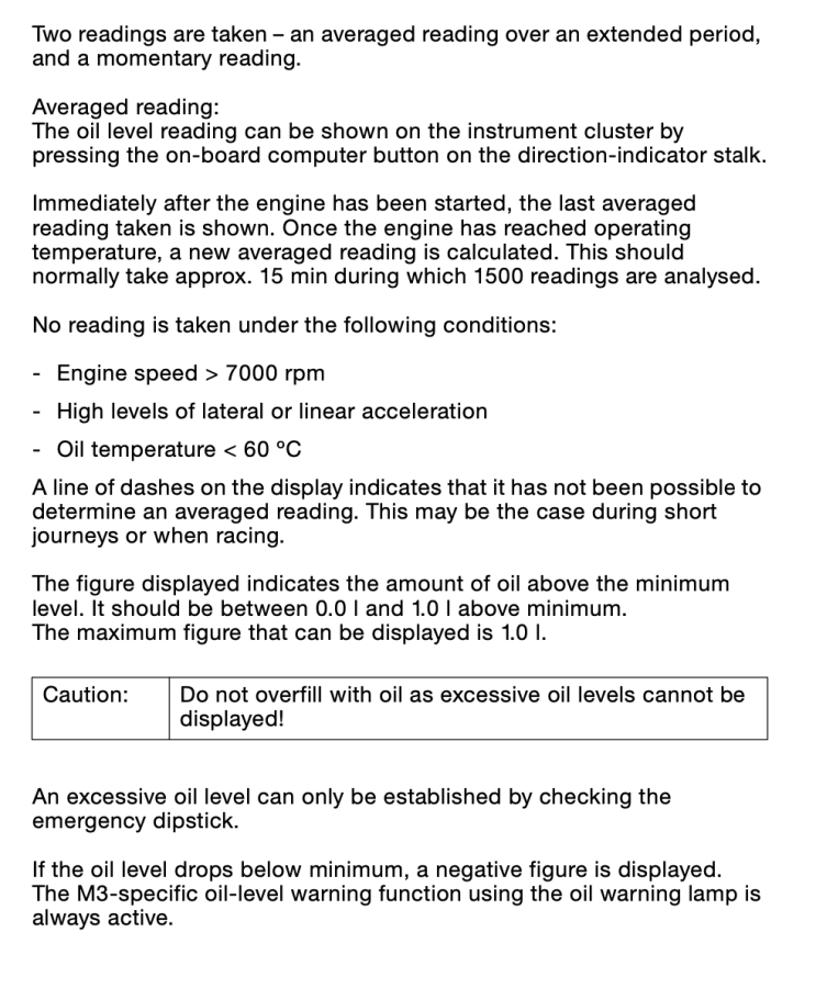 In ISTA/D I can read out the oil level in the DME status which shows 99mm and is dead on the top of the CSL dip stick.