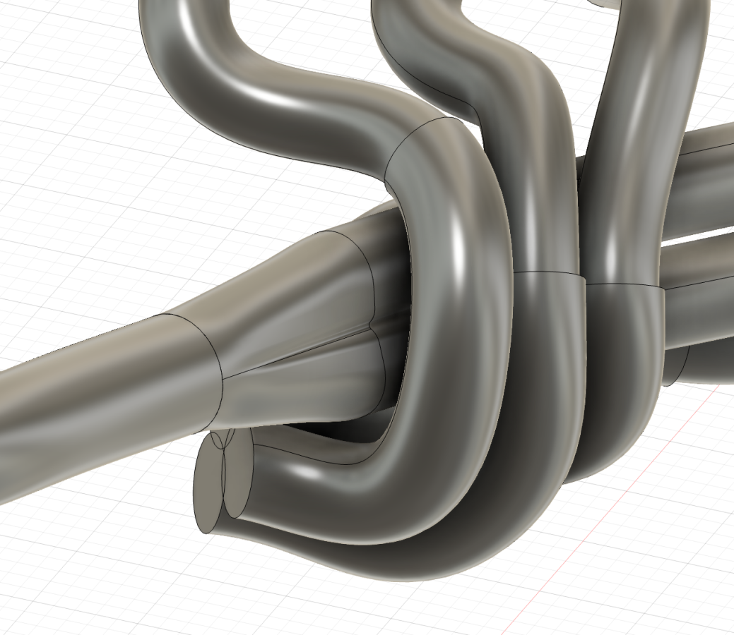 Started work on a collector design that takes full advantage of 3D printing last night (constant cross sectional area in a smaller package). Still more work to do as I'm not happy with the runner layout and 3staxontheradio found some bell housing interference but we're making steady progress: